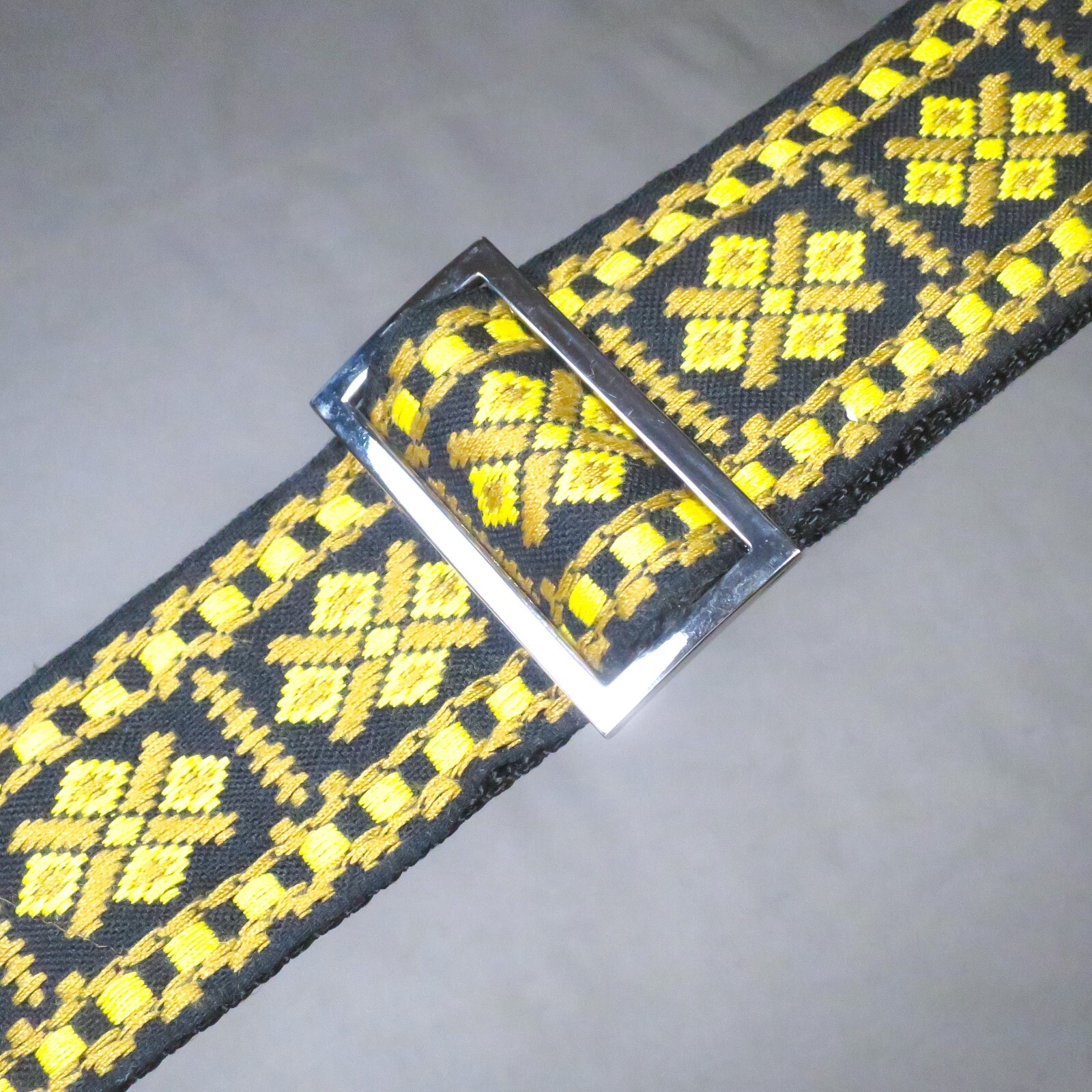 Embroidered Hippie Guitar Strap - Metal Buckle, Suede Ends