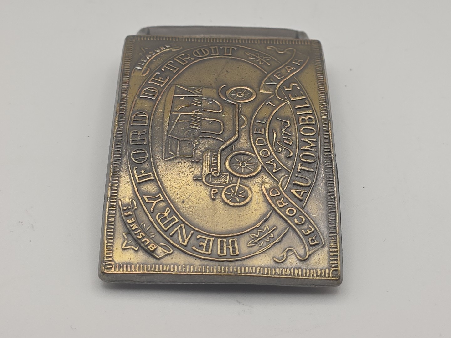 Vintage Henry Ford Detroit Automobiles Model T Record Year Brass Belt Buckle