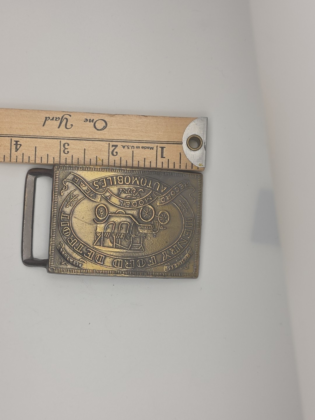 как выглядит Vintage Henry Ford Detroit Automobiles Model T Record Year Brass Belt Buckle фото