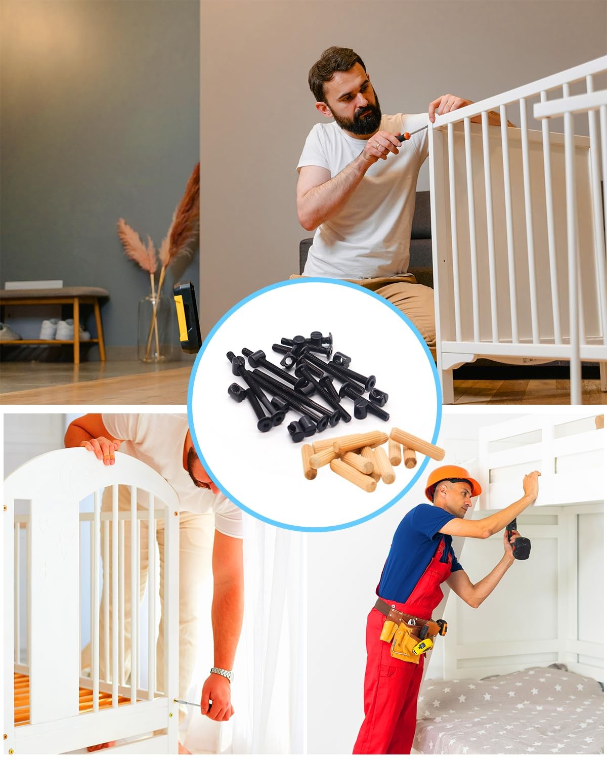 как выглядит Crib Screws Hardware Replacement Kit - 16 Set Baby Bed Frame One Size, Black фото
