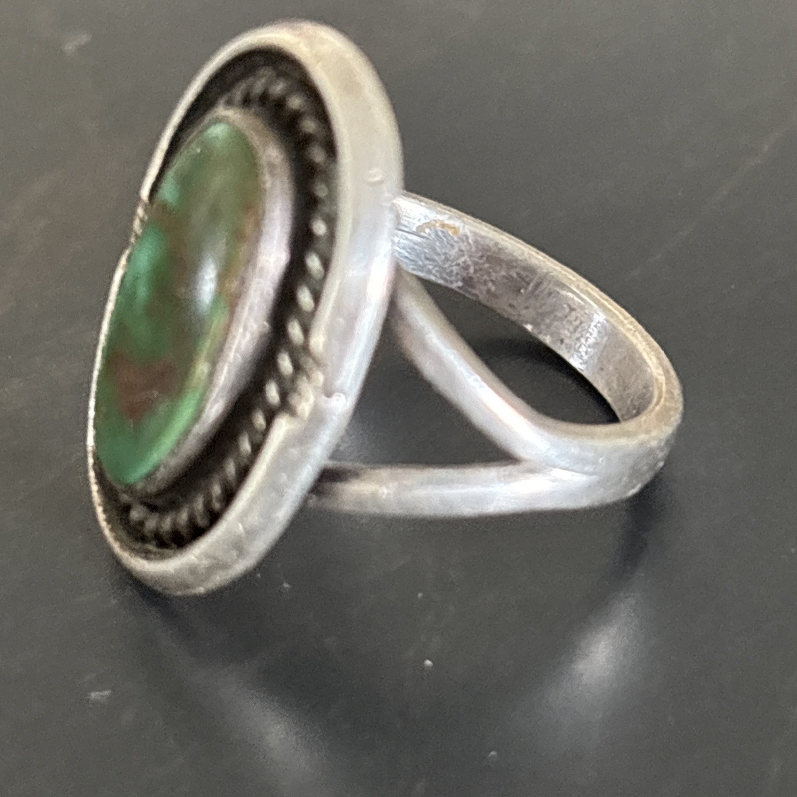 Antique Navajo Sterling Silver Green Turquoise Oval Ring Size 6.5