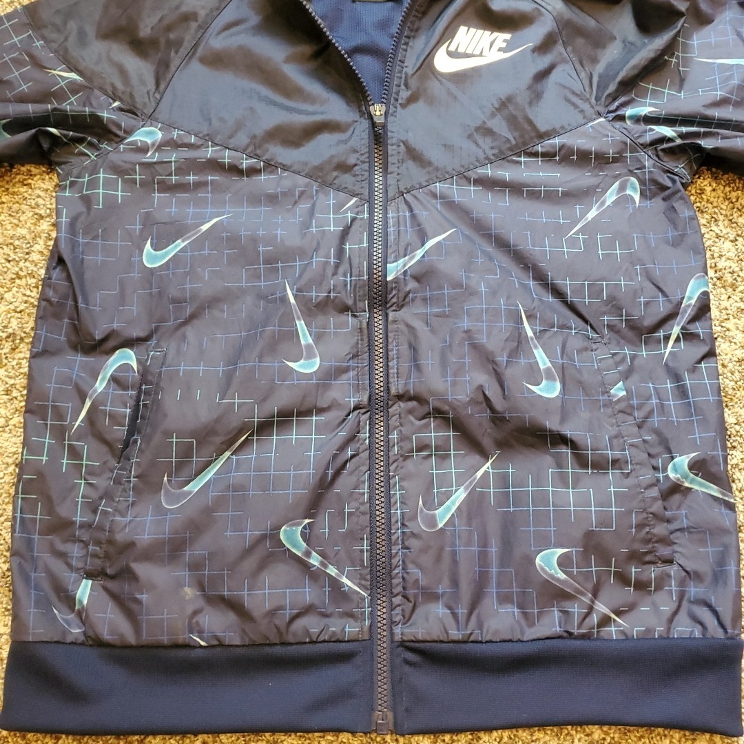 как выглядит Nike Windrunner Jacket Boys Youth Large Blue AOP Glow Logo Hooded Full Zip фото