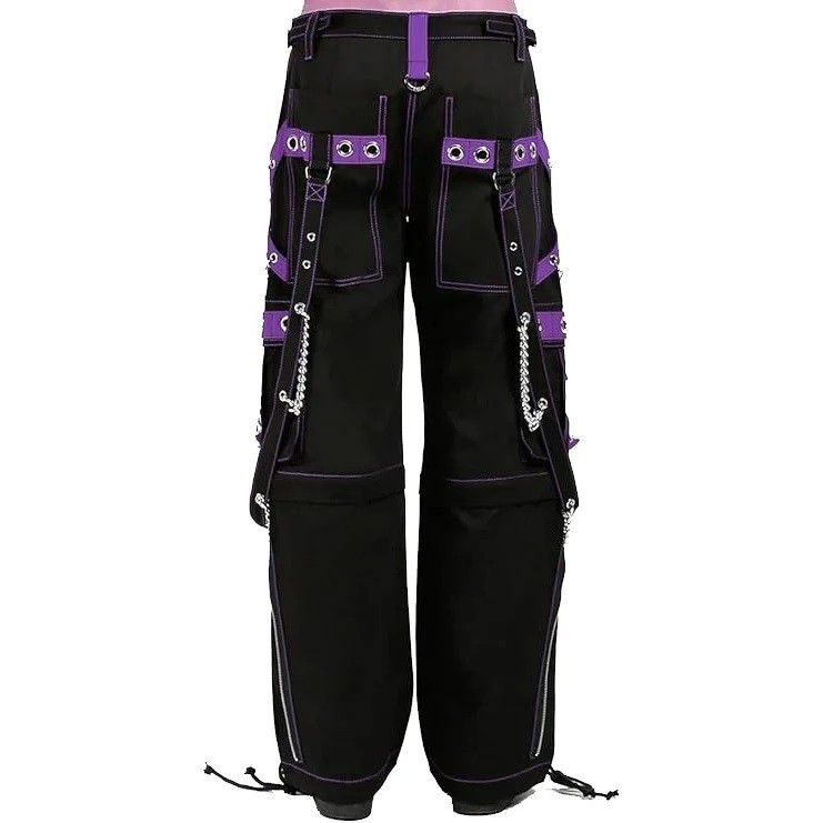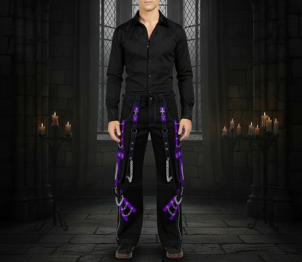 Men Gothic Jeans Apocalyptic Punk Emo Black Purple Bondage Pant /USA