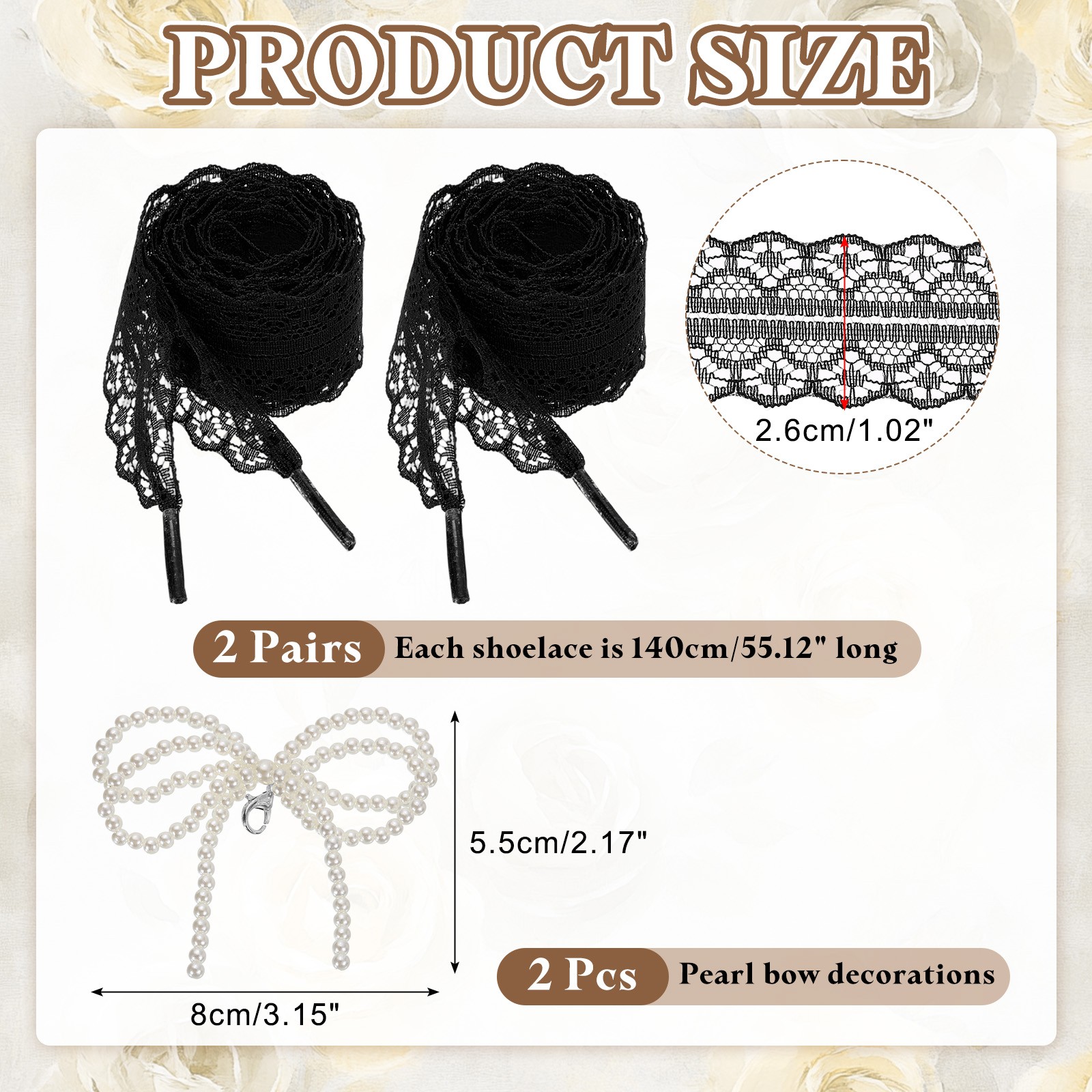 2Pairs Flat Laces Shoelaces, 2.6CM Wide 140CM Length Lacy Shoe Laces, Black