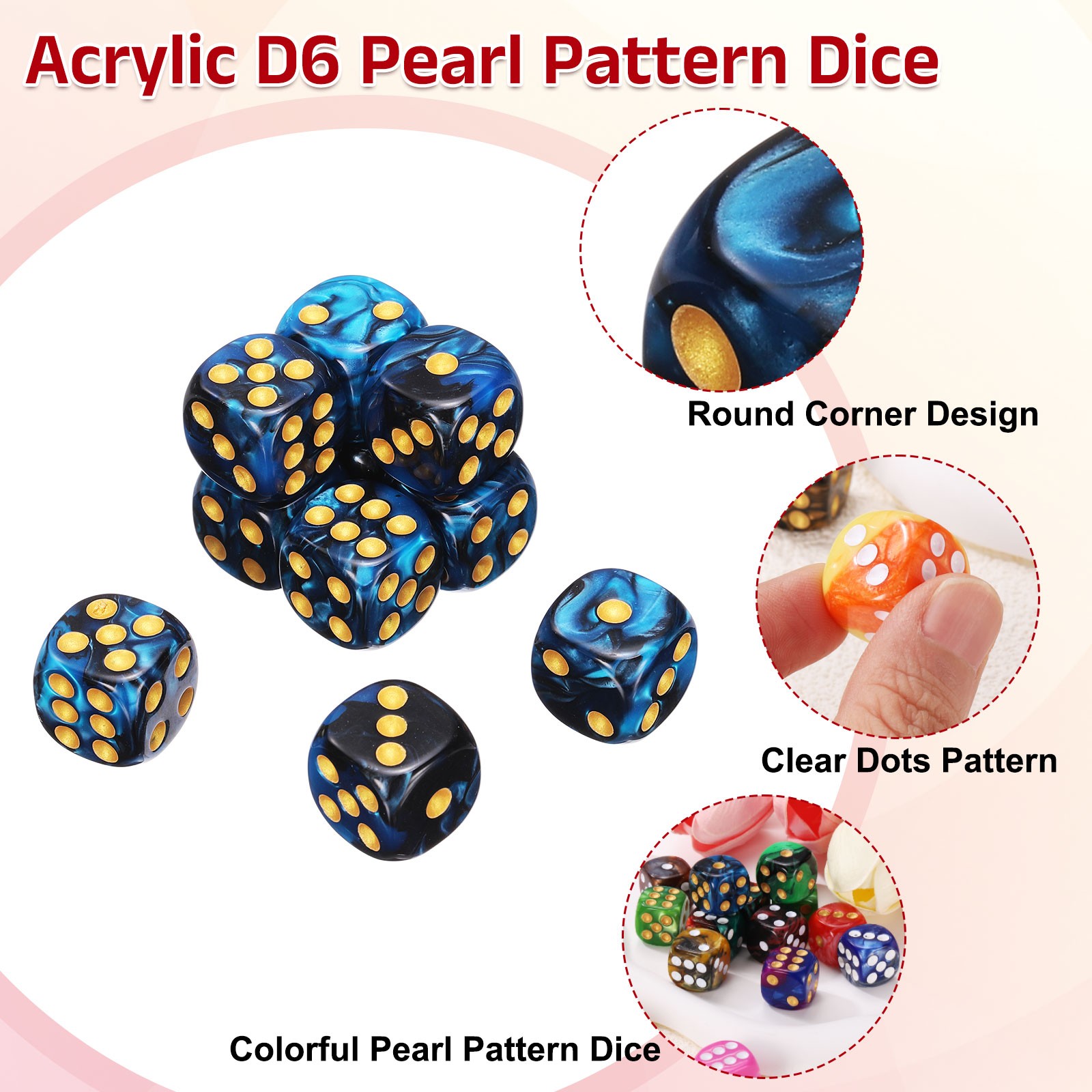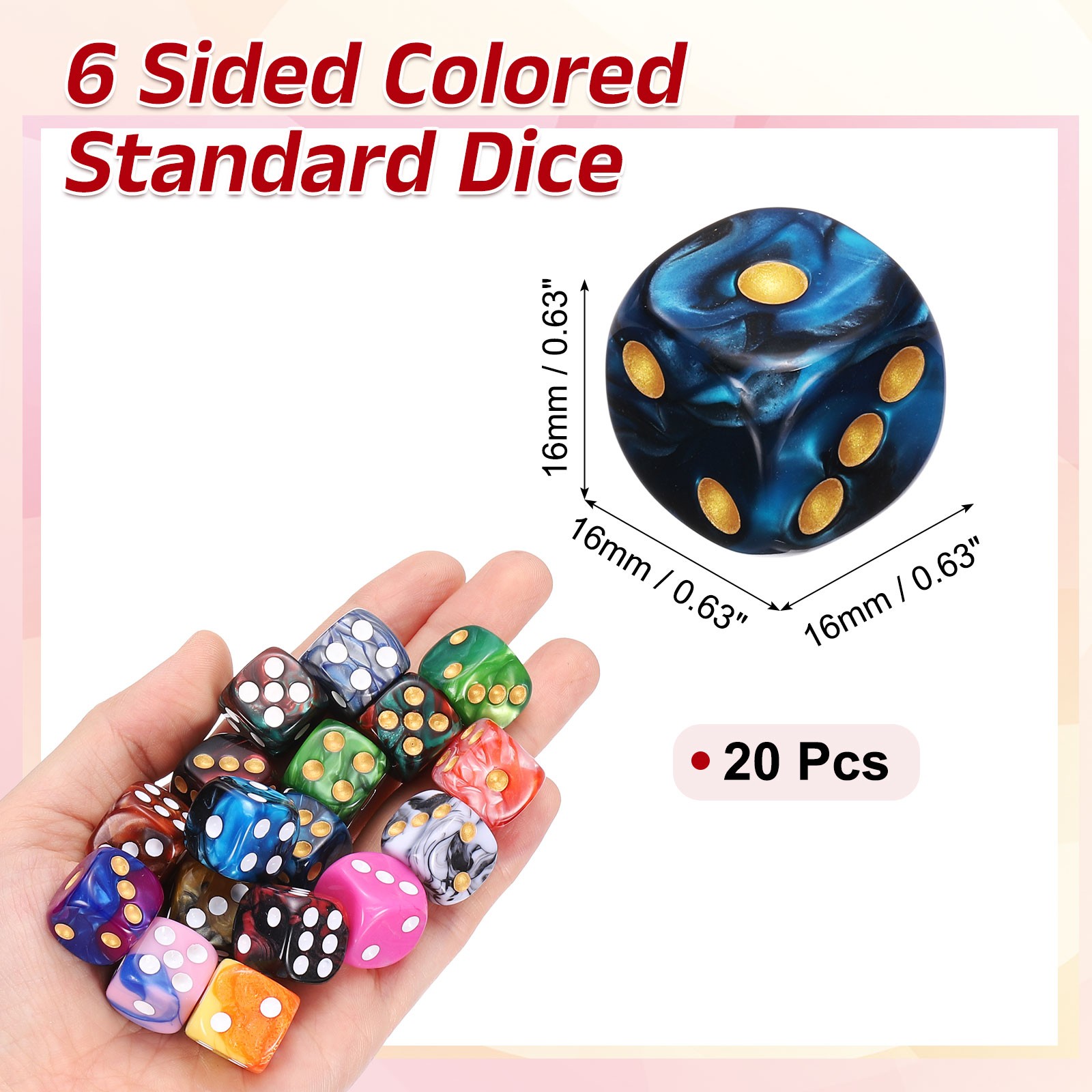 как выглядит 20Pcs 6 Sided Colored Standard Dice, Acrylic D6 Mini Game Dice, Black/Blue, Gold фото