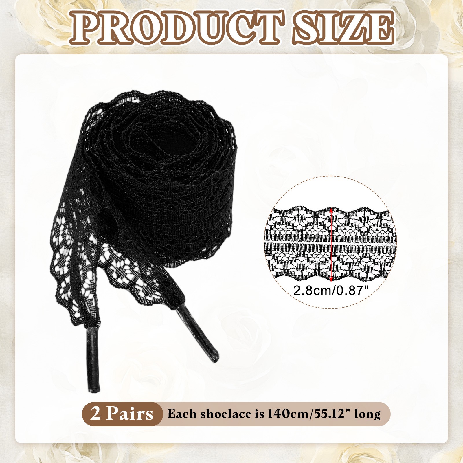 2Pairs Flat Laces Shoelaces, 2.2CM Wide 160CM Length Lacy Shoe Laces, Black