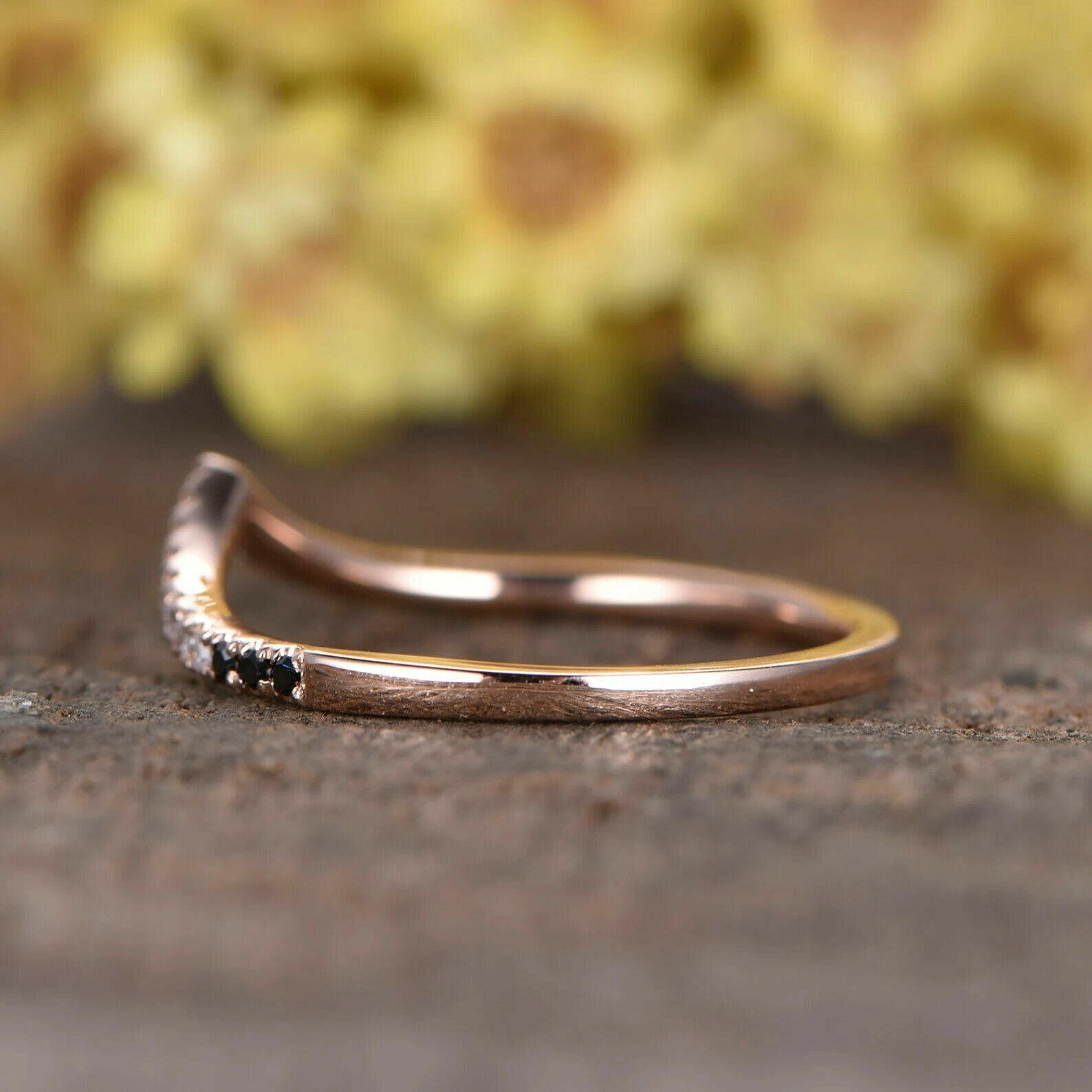Round Diamond Simulated Wedding Engagement Band Ring In 14k Rose Gold Plated