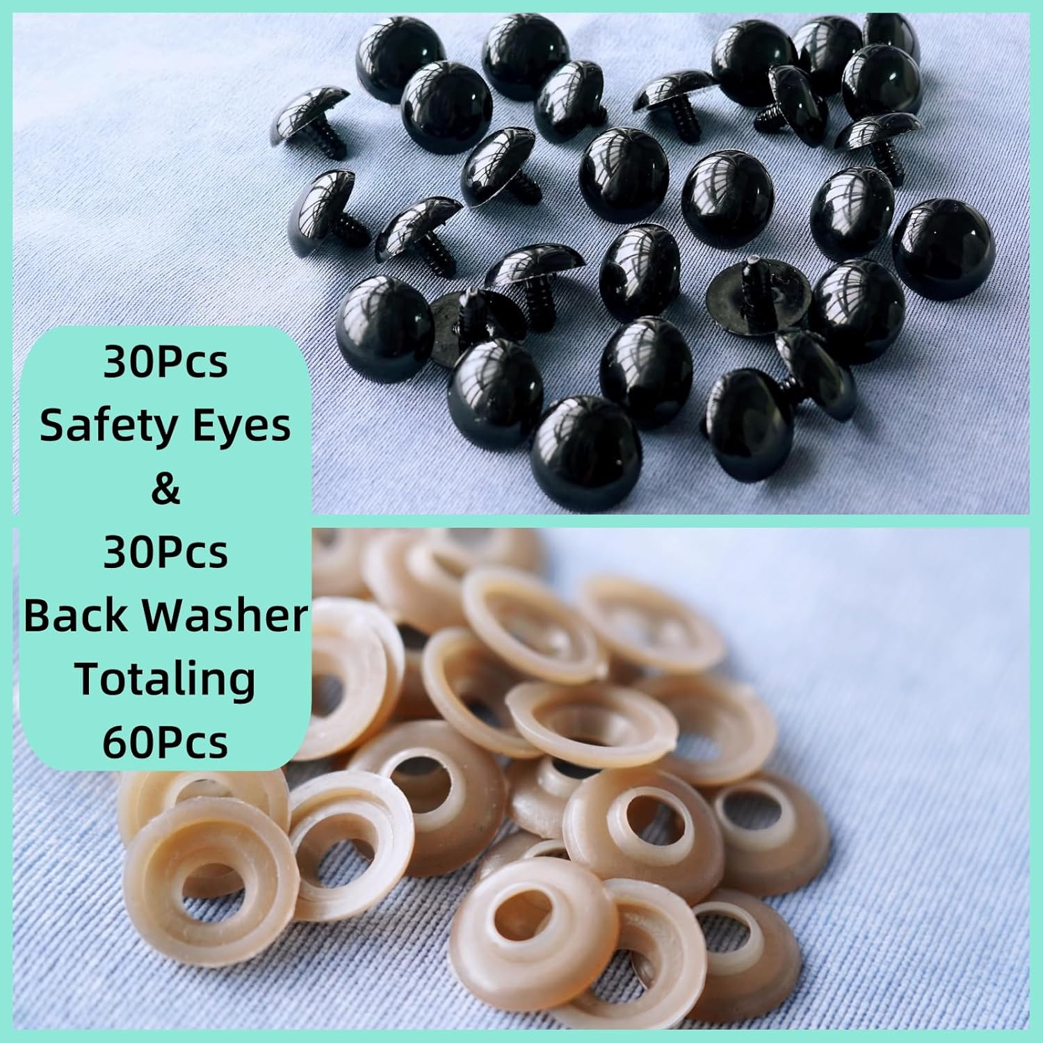 60Pcs 30mm Safety Eyes and Washers 30 mm Safety Eyes for Crocheting Large Bla...