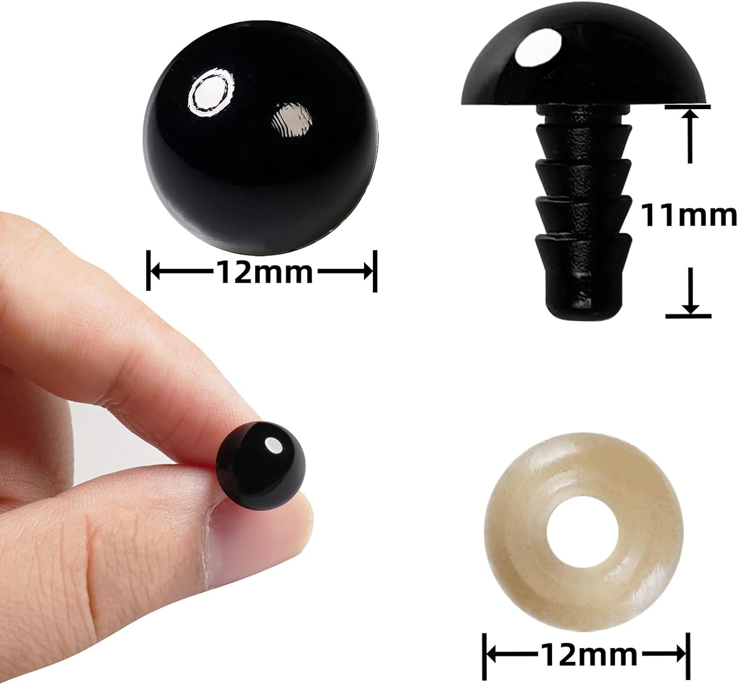 как выглядит 400Pcs 12mm Safety Eyes and Washers 12 mm Safety Eyes for Crocheting Plastic ... фото