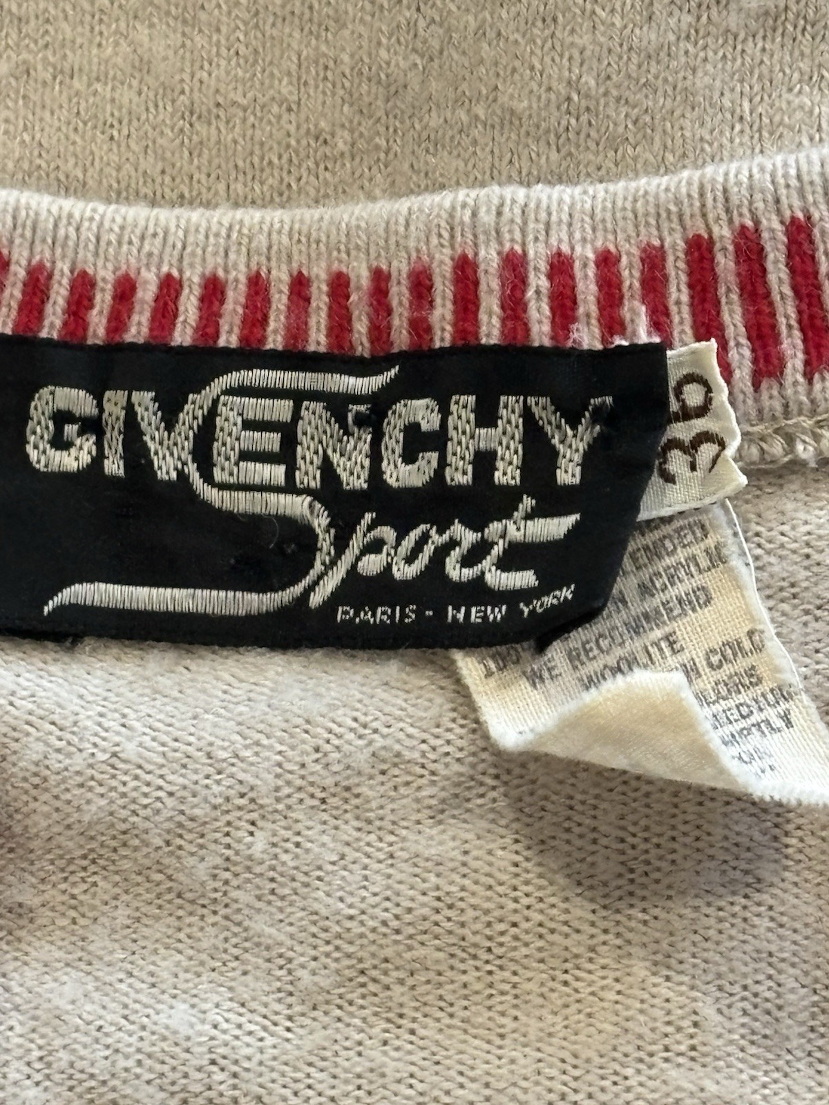 как выглядит vintage givenchy sport womeens beige button cardigan with red trim фото