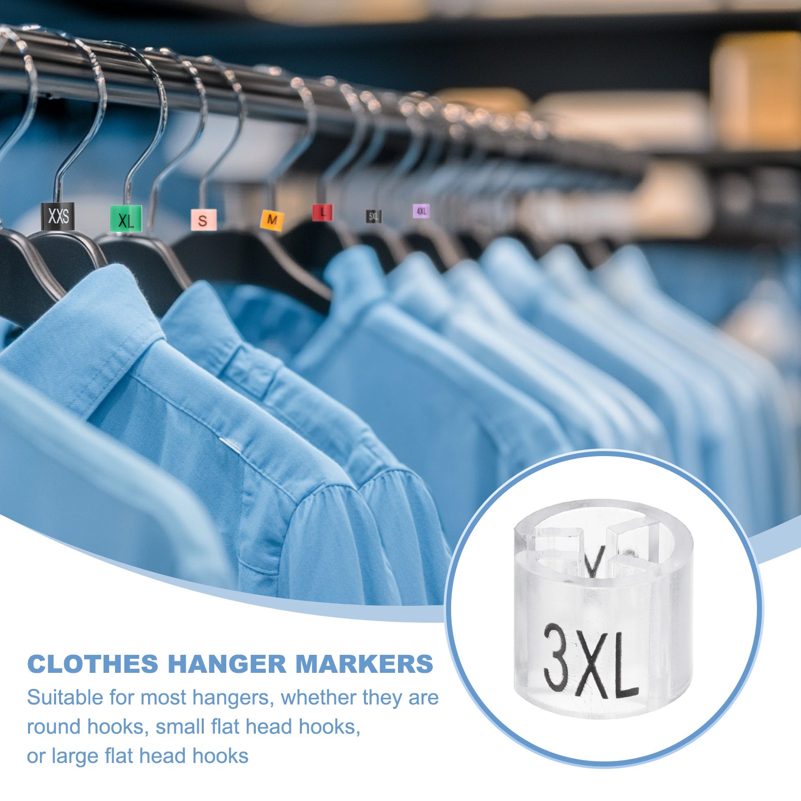 140 Pcs Clothes Hanger Markers, 3XL Size Tag Fit 3mm Rod, Clear