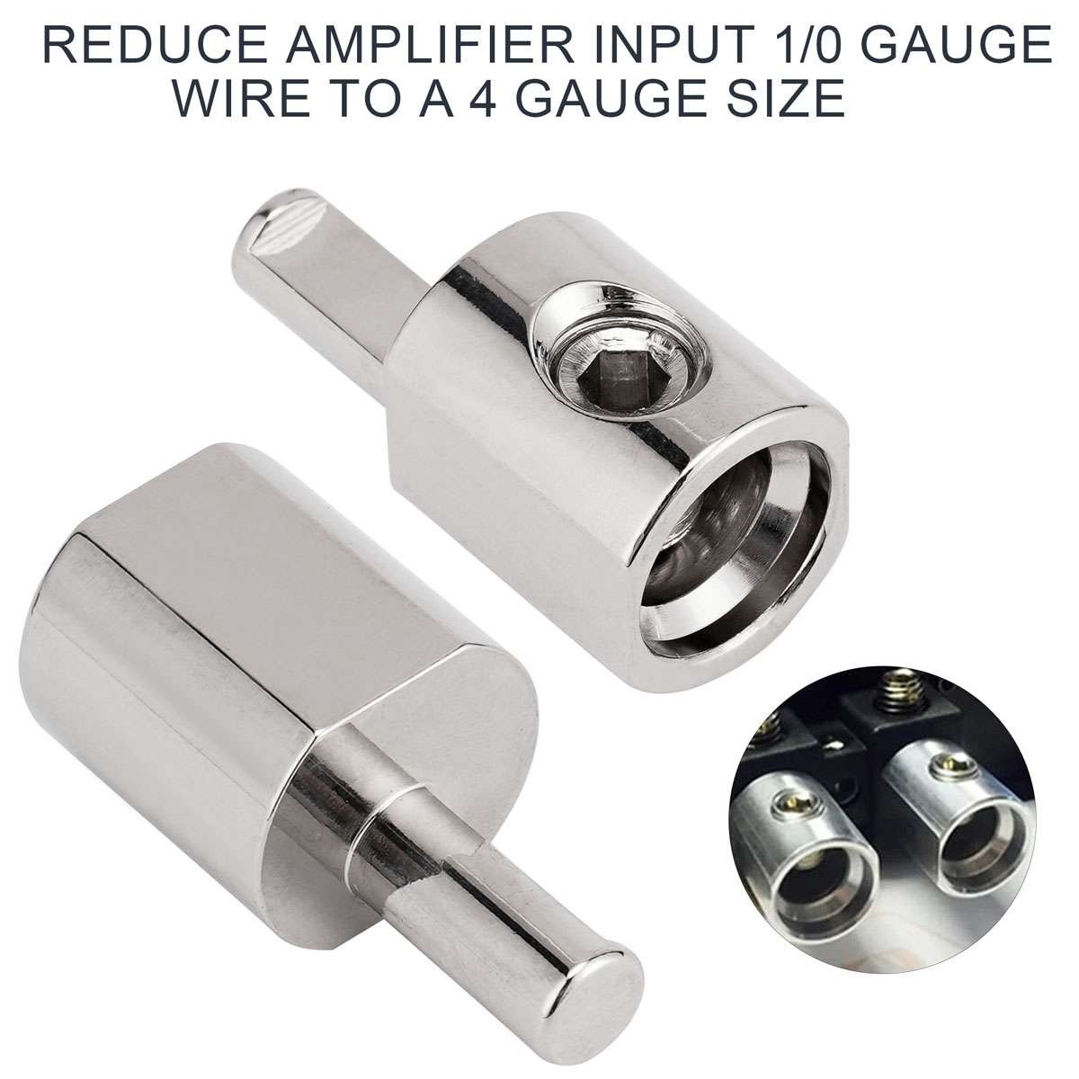 2PCS Amp Car Audio Amplifier Power and Ground 1/0 Gauge to 4 Gauge Input Reducer