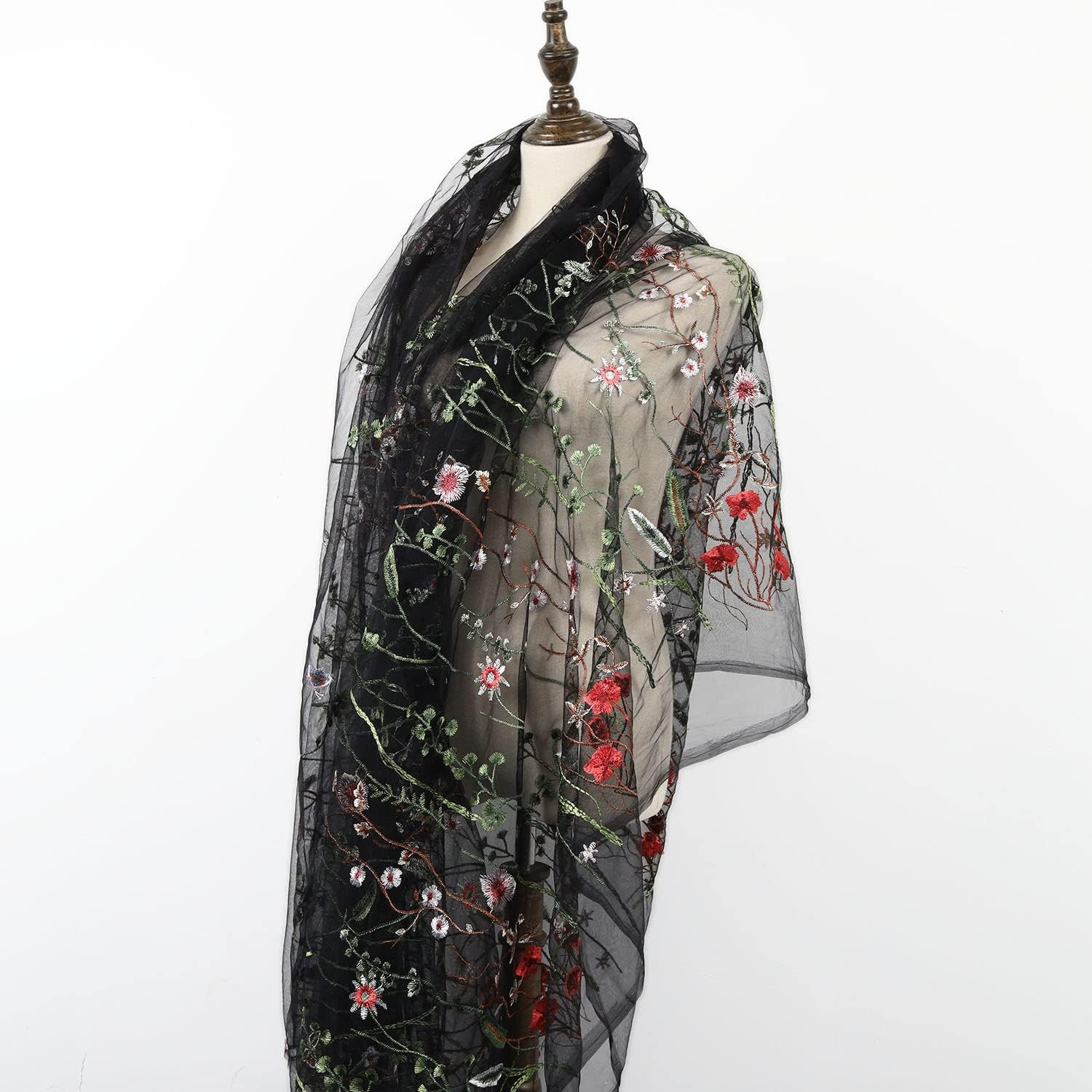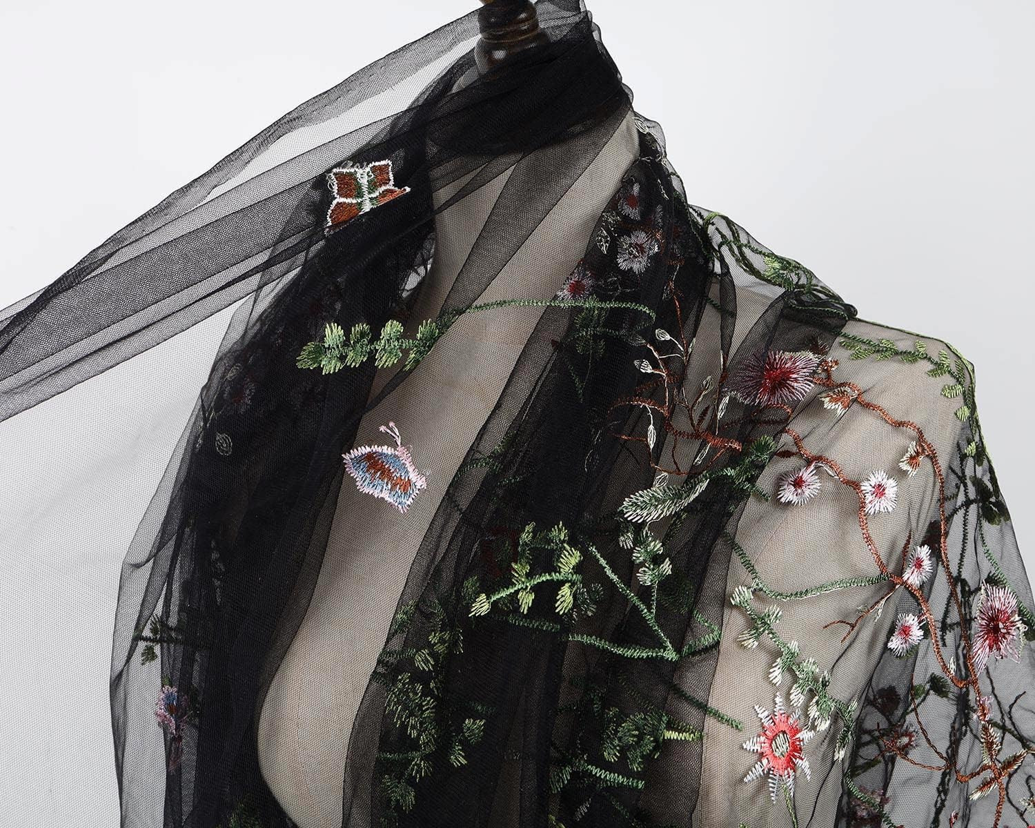 Exquisite Floral Embroidered Lace Fabric Flower Plant Tulle for Sewing Dress Gow