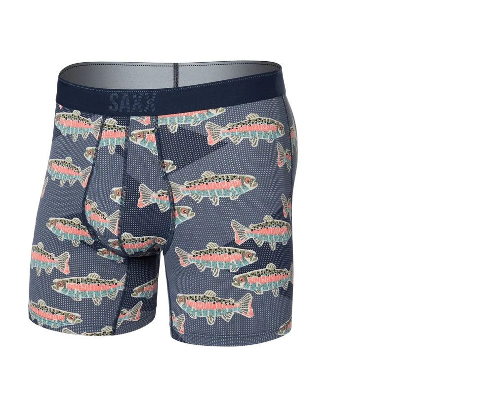 Saxx Quest Quick Dry Mesh Men's Boxer Brief Trout Fish Blue Size Small