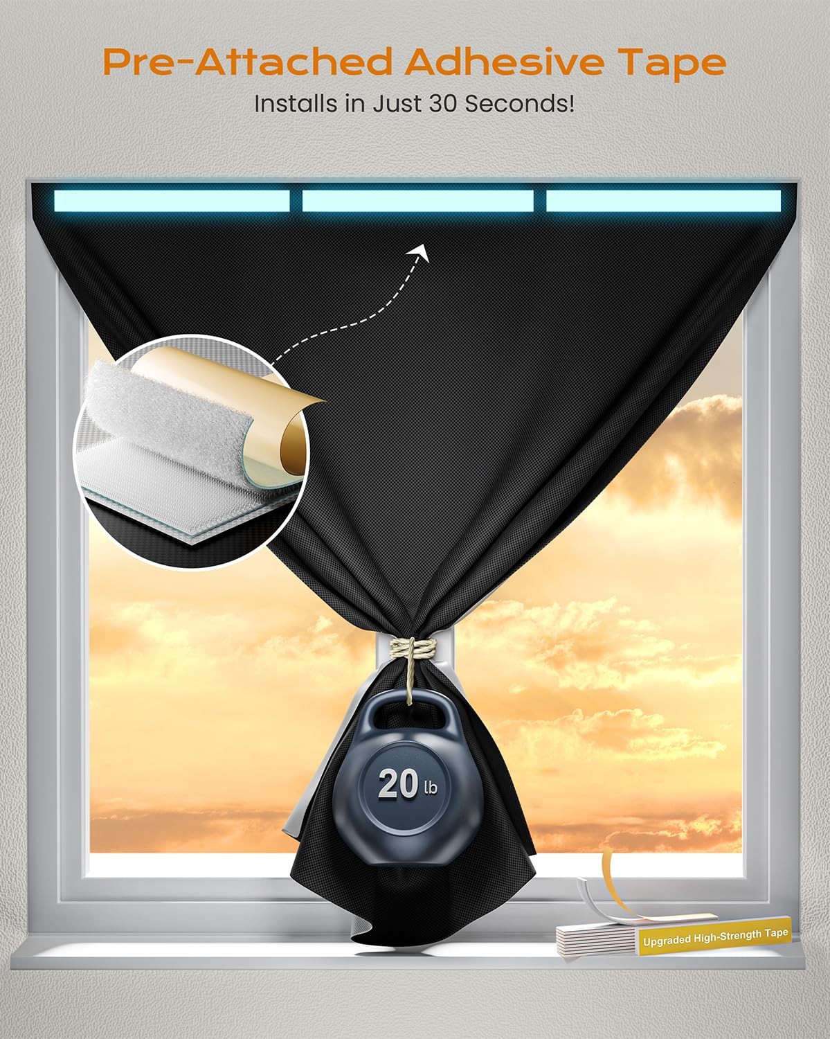 Portable Blackout Curtains for Bedroom, No Drill Black Out Shades, Easy Install