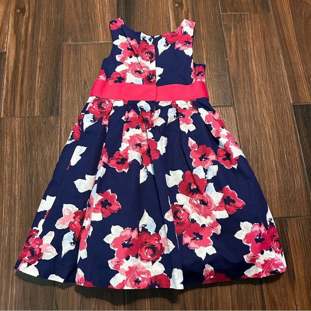 Janie and Jack Capri Pink Floral Dress 7 Purple Tulle Button Back Pink Bow