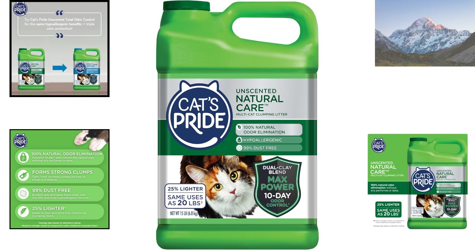 Max Power Natural Cat Litter - Unscented, Hypoallergenic, 99 Dust Free, 15 lbs