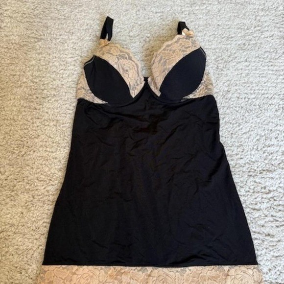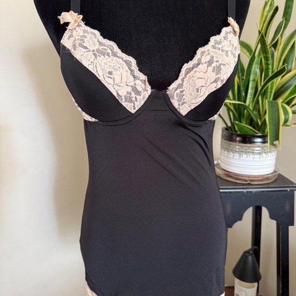 Black Lingerie Slip with Nude Floral Lace Cups Women's M