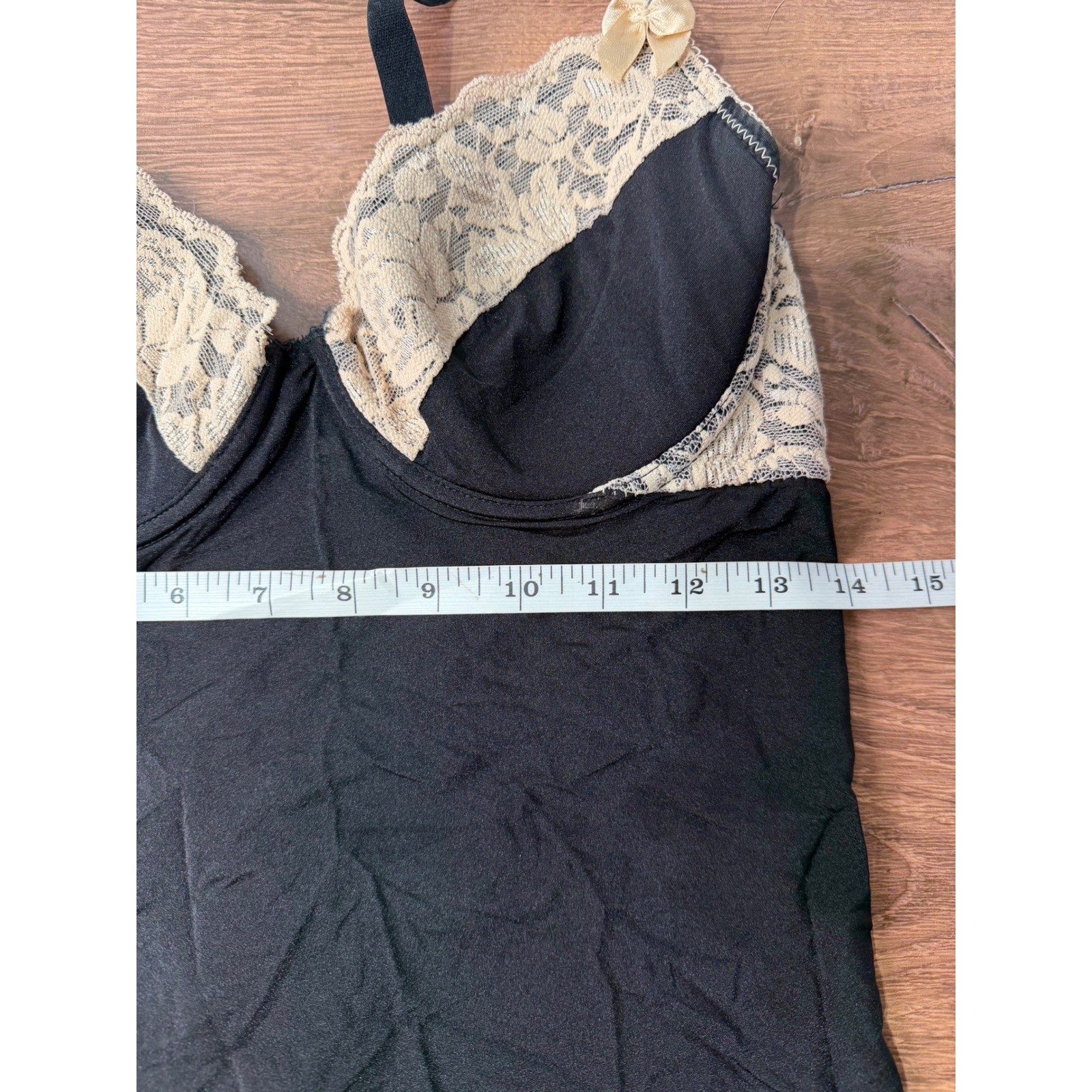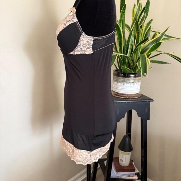 как выглядит Black Lingerie Slip with Nude Floral Lace Cups Womens M фото