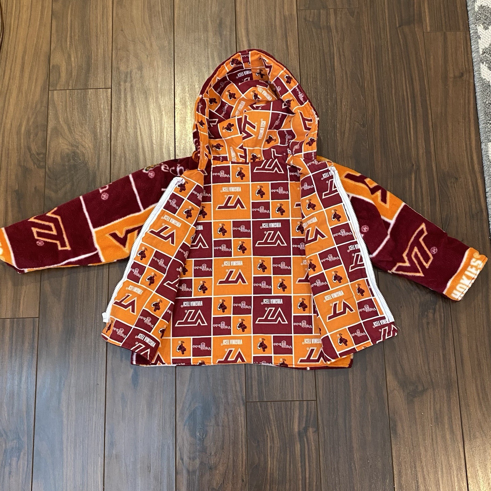 Virginia Tech Hokies Fleece Hoodie Jacket Full Zip Boys XS Size 4/5 Handmade