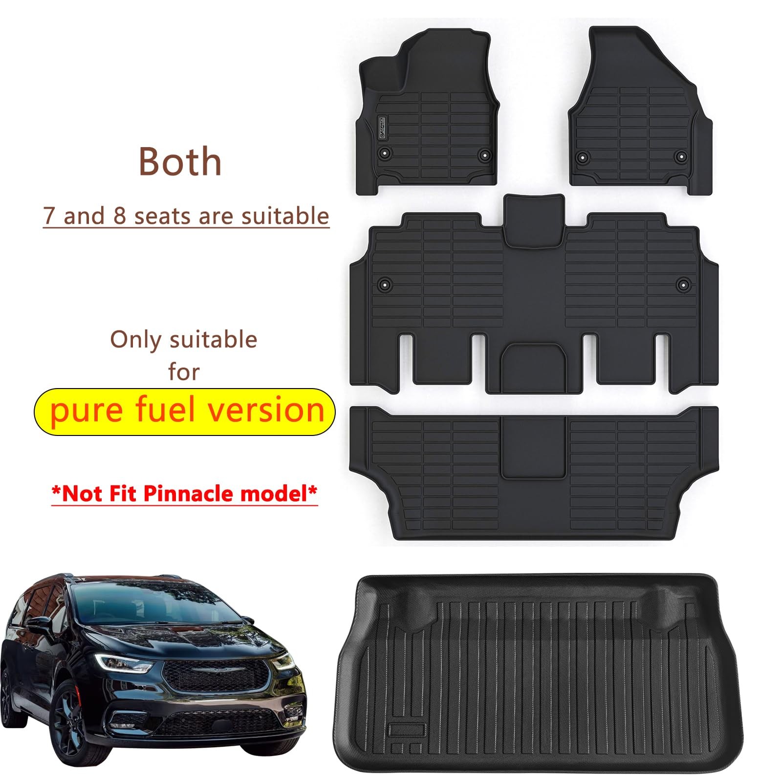 LJWAITO Floor Mats 17-24 Chrysler Pacifica Gas Touring All Weather Cargo Liner