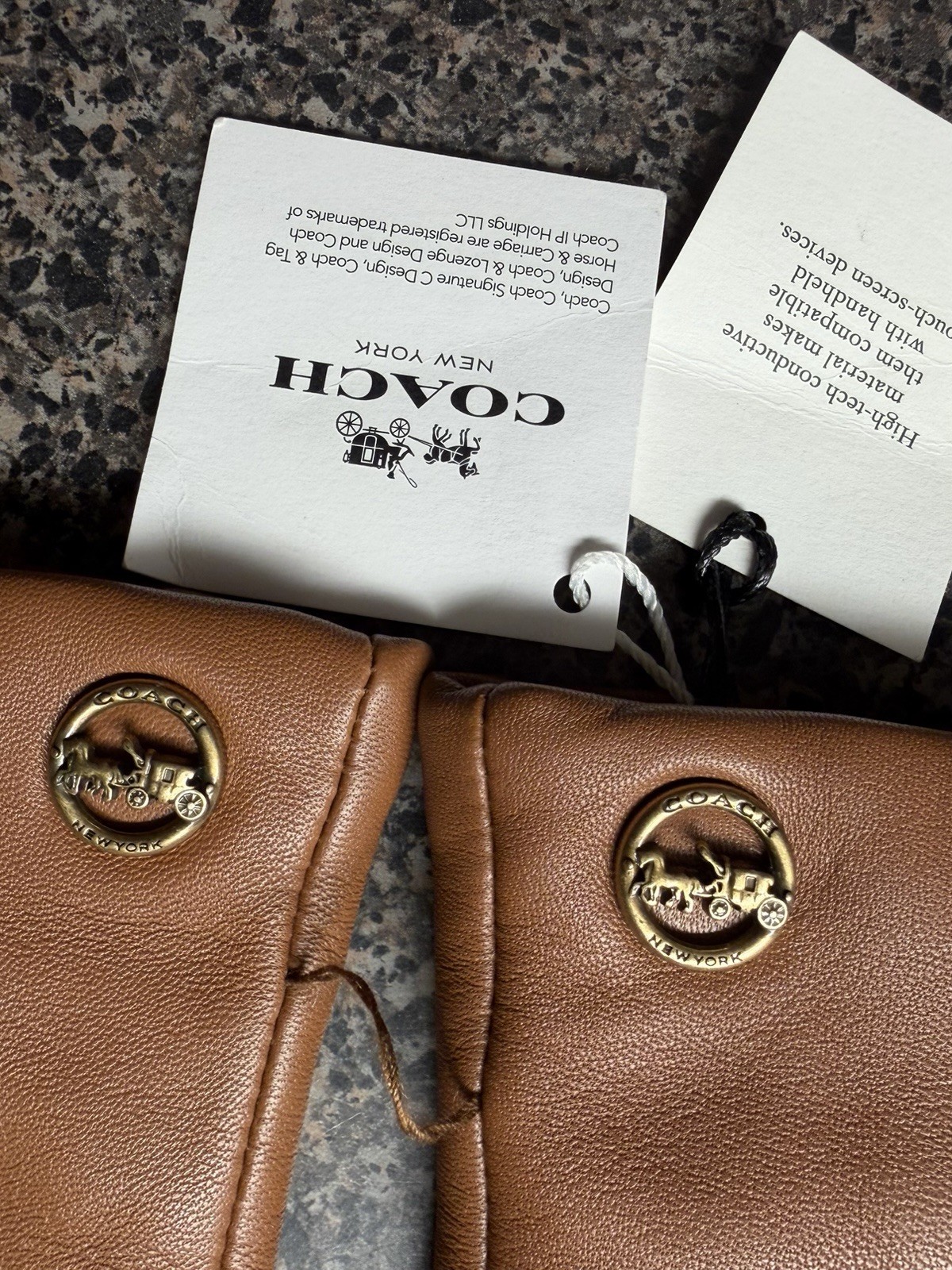 COACH Leather Tech Gloves F76310 Sheep Leather Wool Lining Saddle Tan BNWT Sz7.5