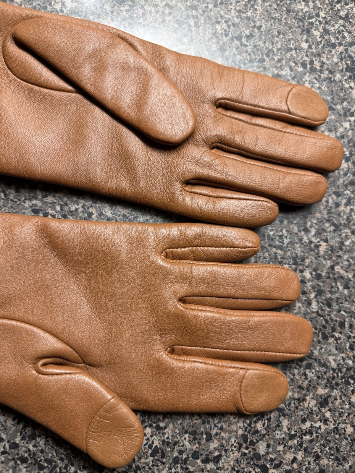как выглядит COACH Leather Tech Gloves F76310 Sheep Leather Wool Lining Saddle Tan BNWT Sz7.5 фото
