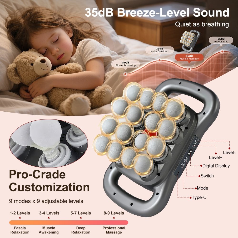 16-Head Massage Gun Set, Deep Tissue Massager with 9 Modes for Back/Shoulder/Leg