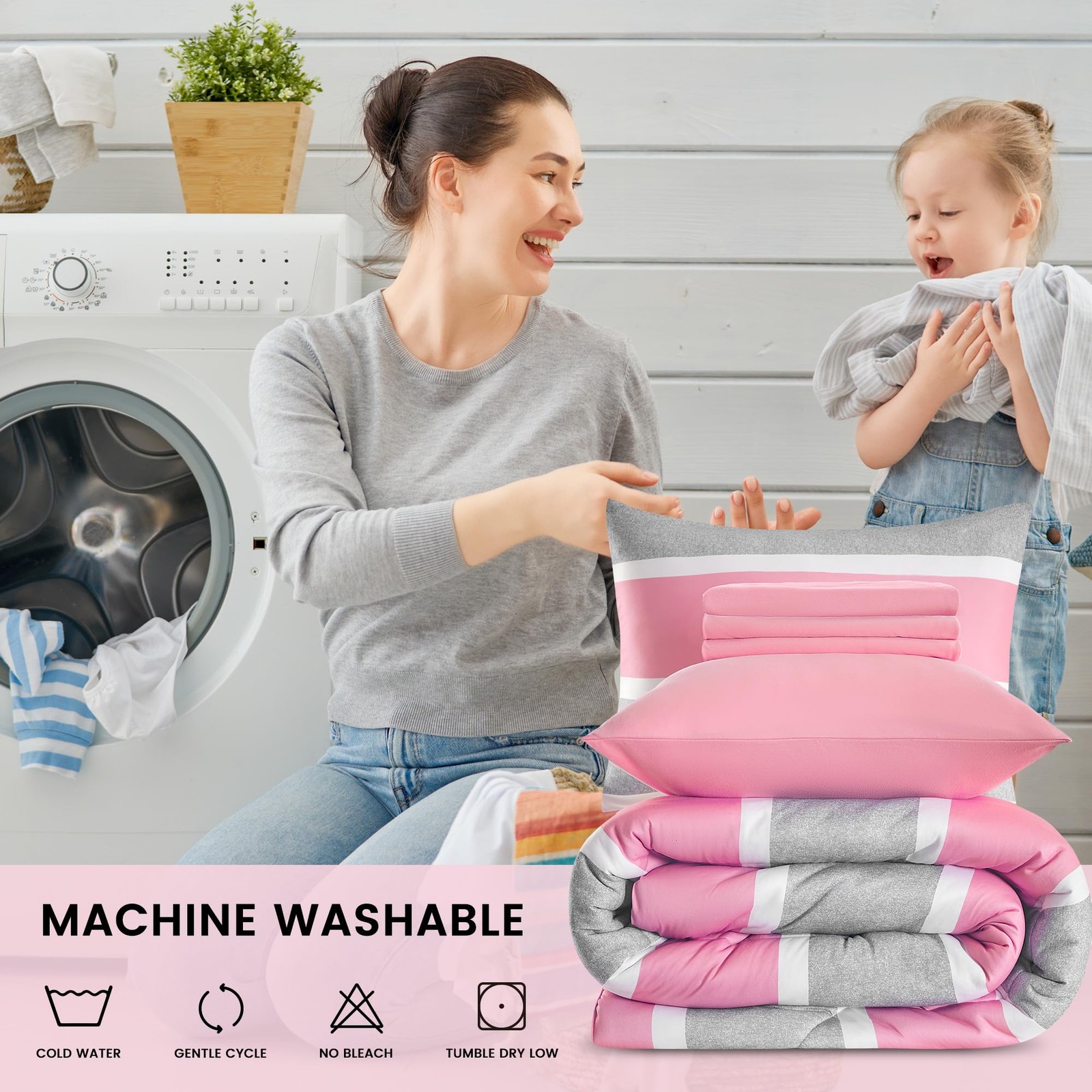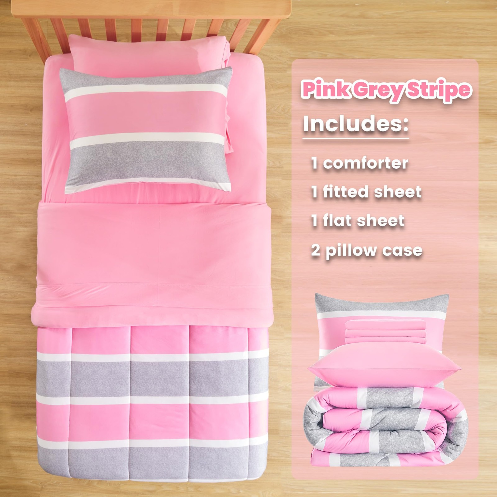 Comforter Set Twin Size, Jersey Knit 5 Pieces Bedding, Super Soft and Breatha...