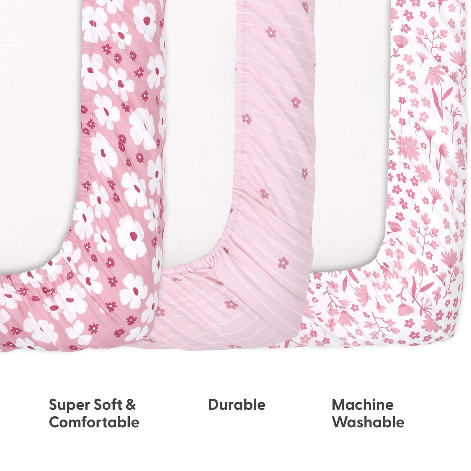 3-Pack Fitted Playard Sheets - Soft Breathable Baby Girl Mini Crib Sheets, ...