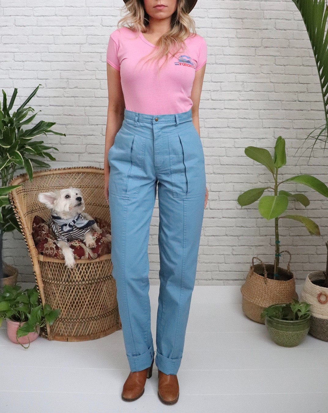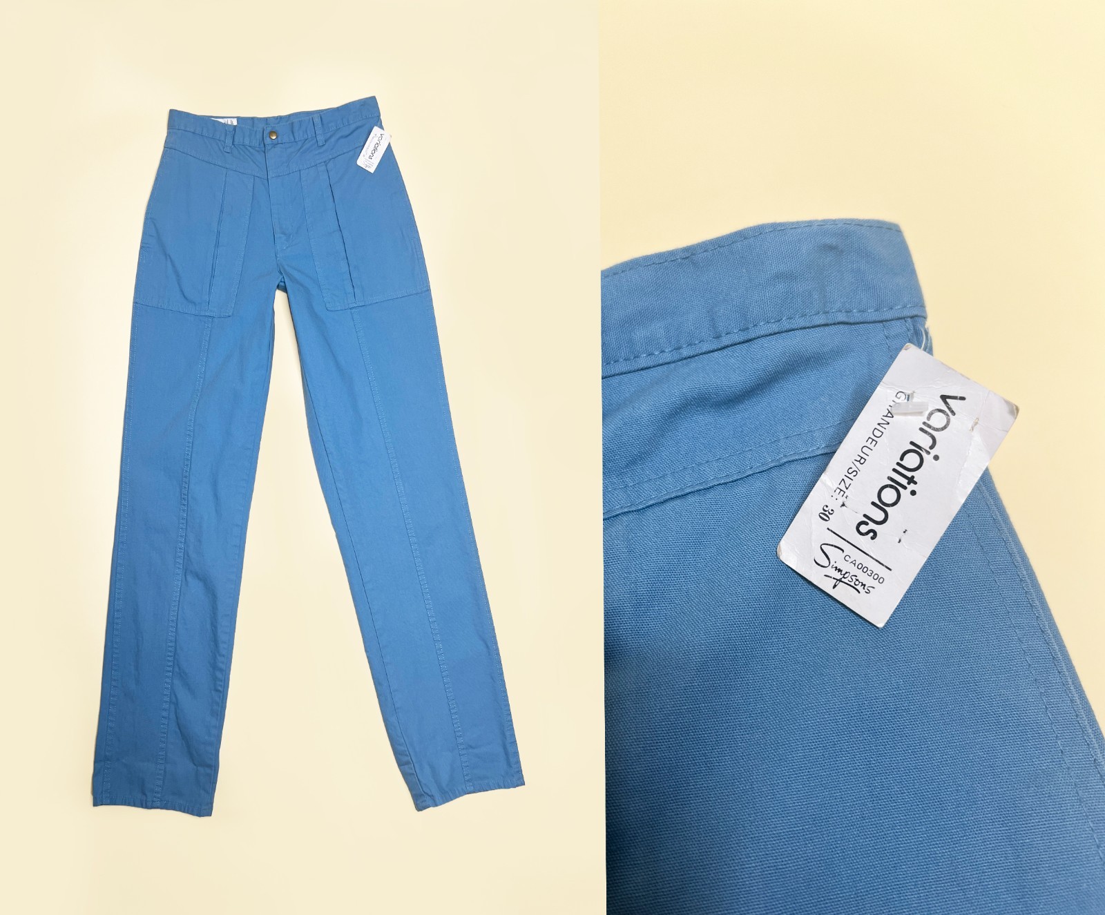как выглядит 70s Dusty Blue Cotton Pants 28 To 29 W x 35 L Vintage Deadstock High Waist фото