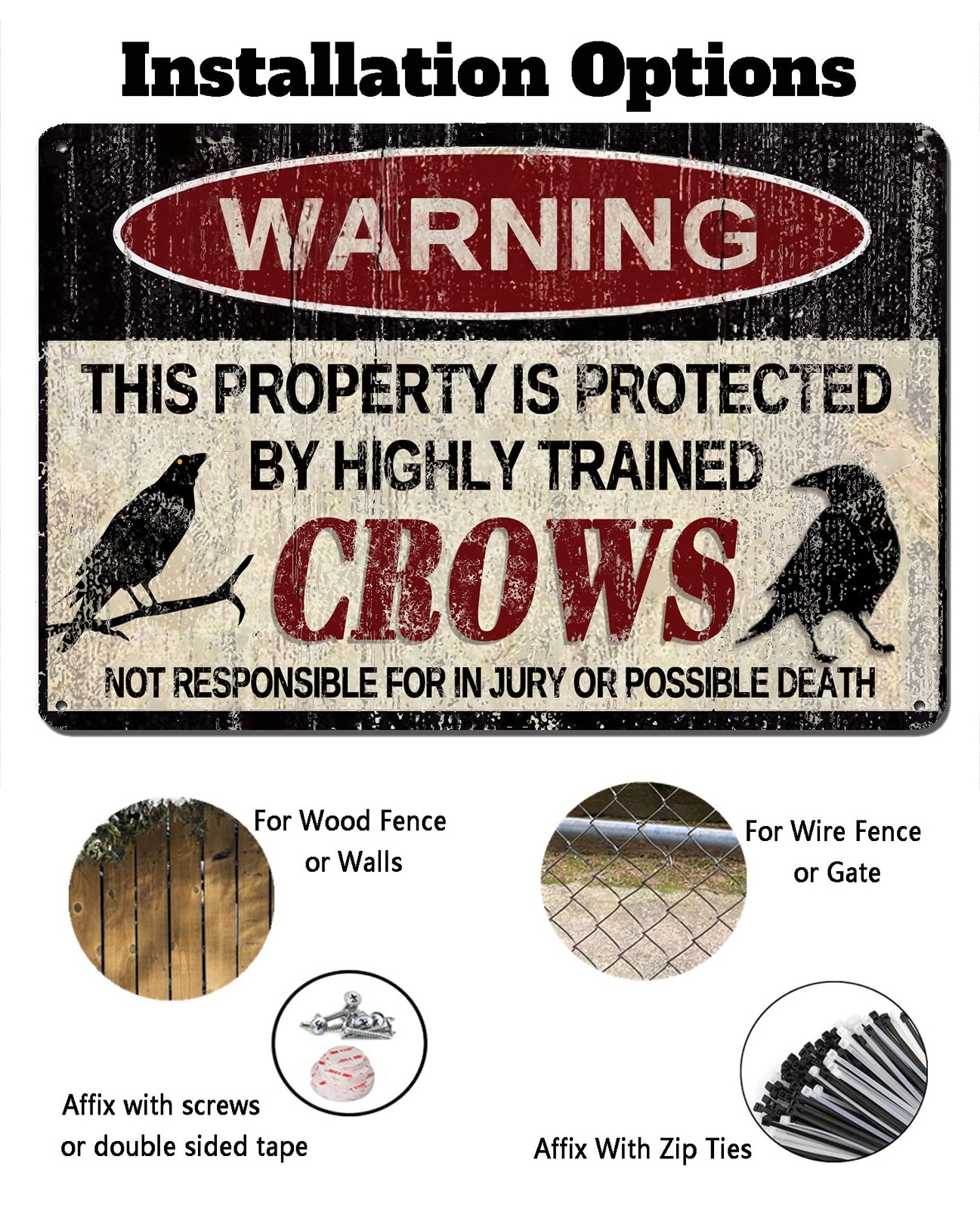 Vintage Crow Metal Sign Warning This Property is Protected 8L x 12W,