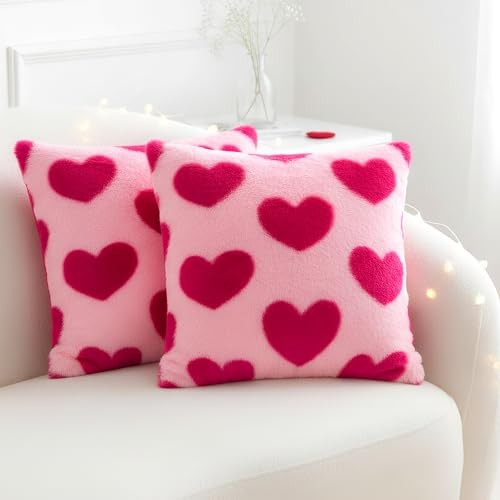 2 Pcs Valentines Pillow Covers 18x18 inch 18 x 18 Pack of 2 Pink Rose Red