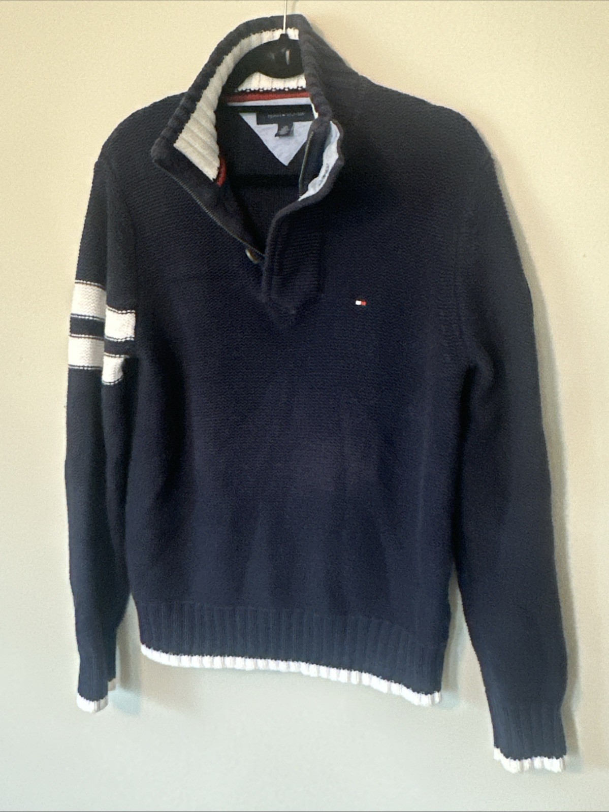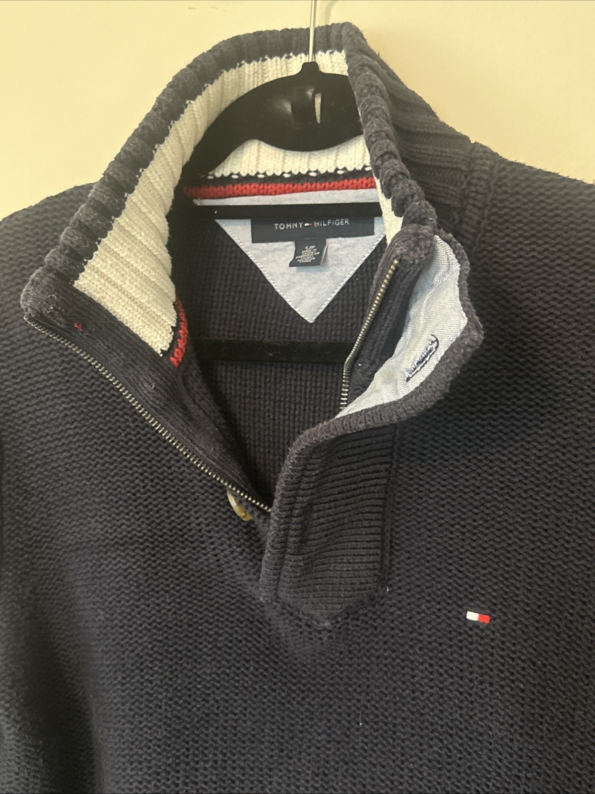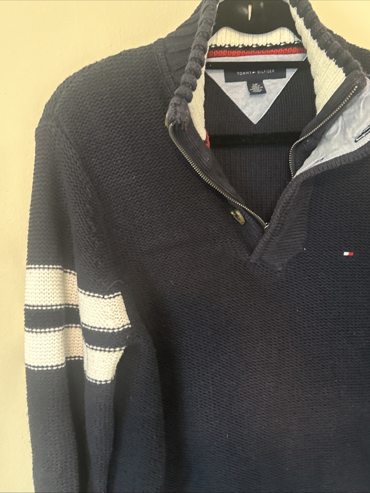 Tommy Hilfiger Blue Sailing Preppy men s 1/4 Zip Chunky Fisherman Boat Sweater