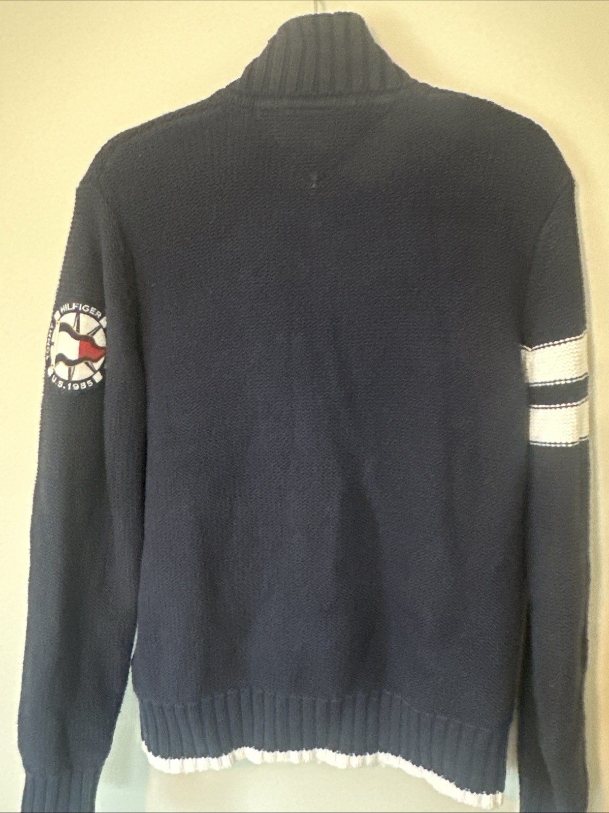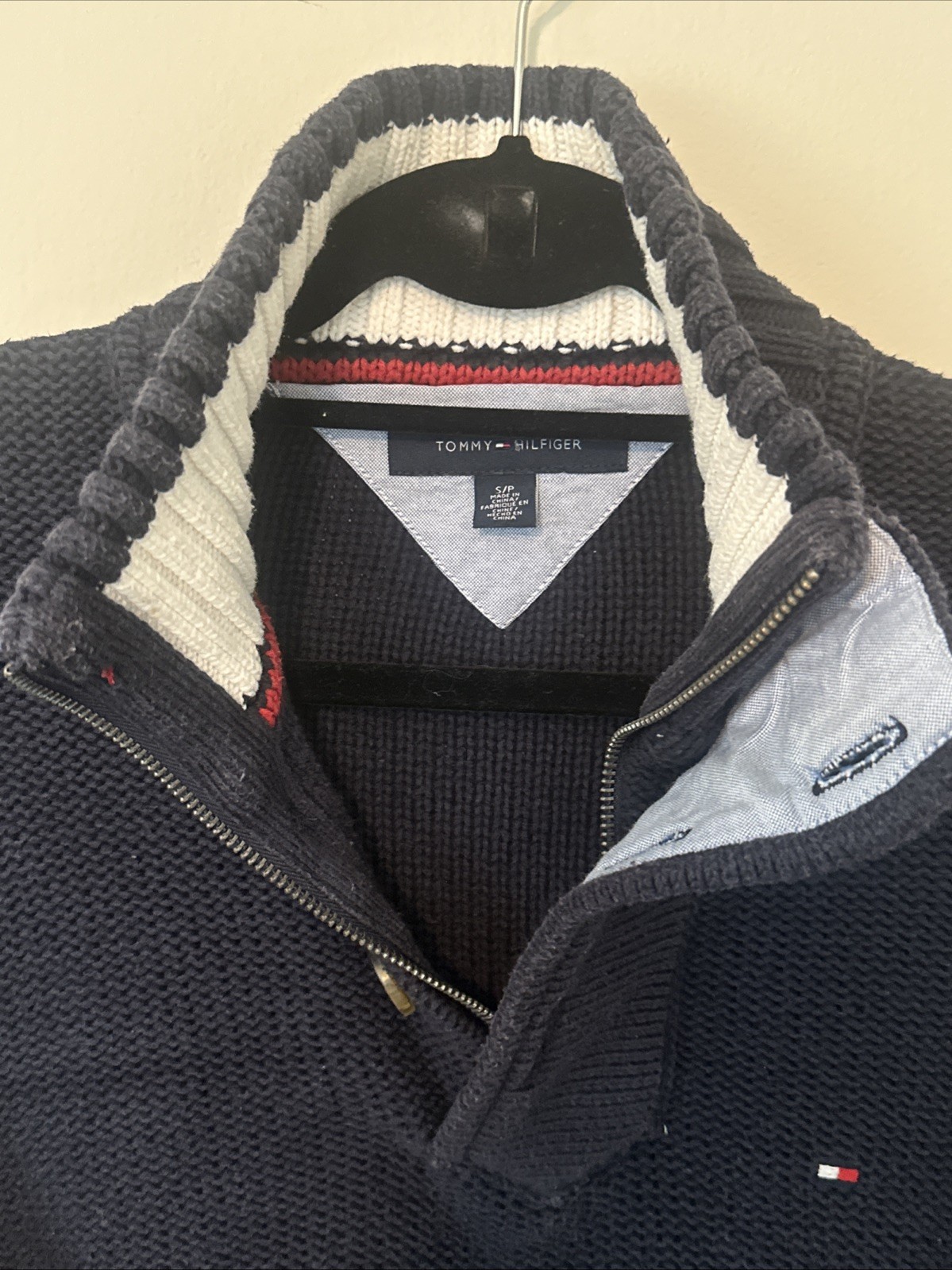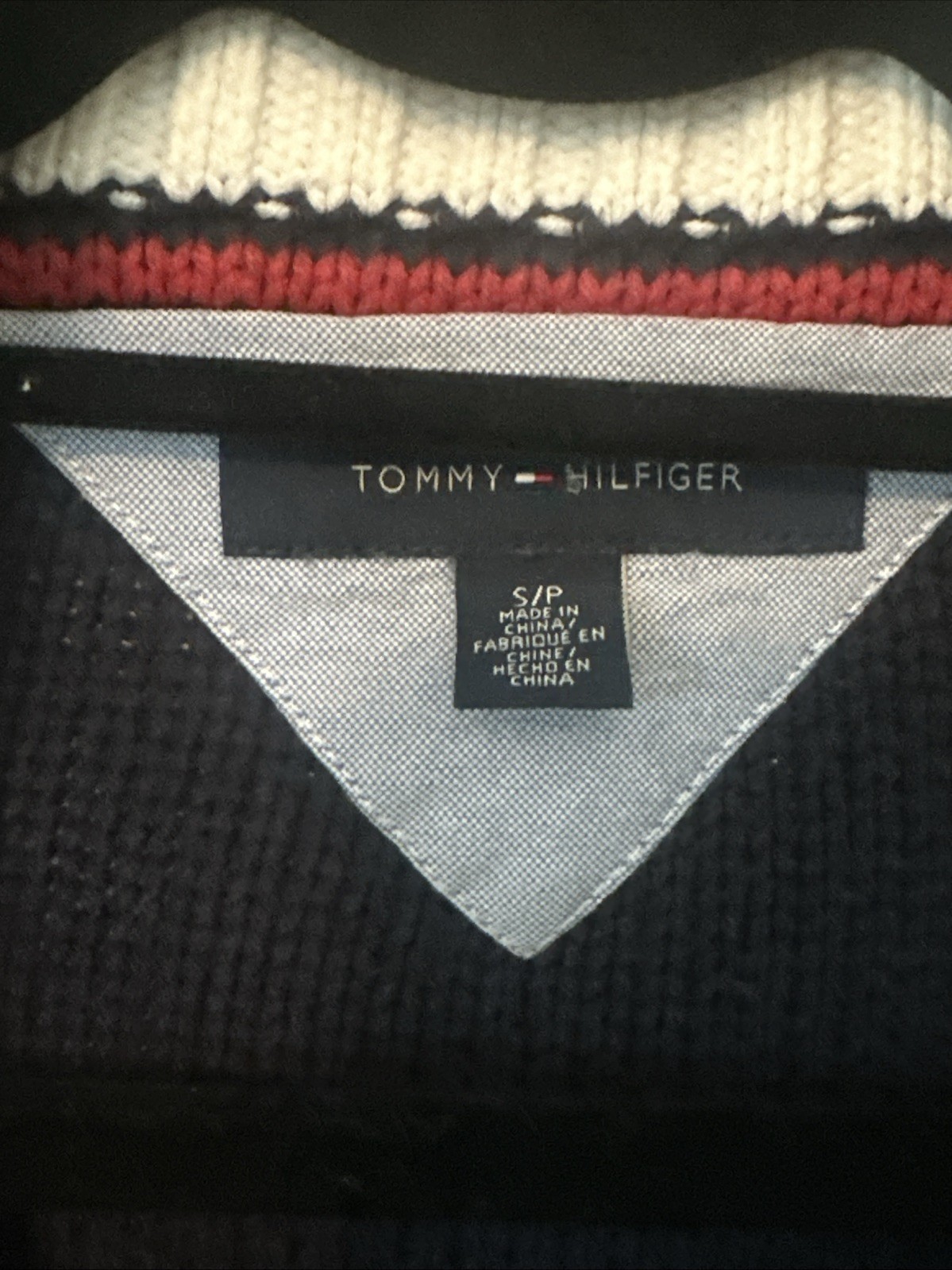 Tommy Hilfiger Blue Sailing Preppy men s 1/4 Zip Chunky Fisherman Boat Sweater