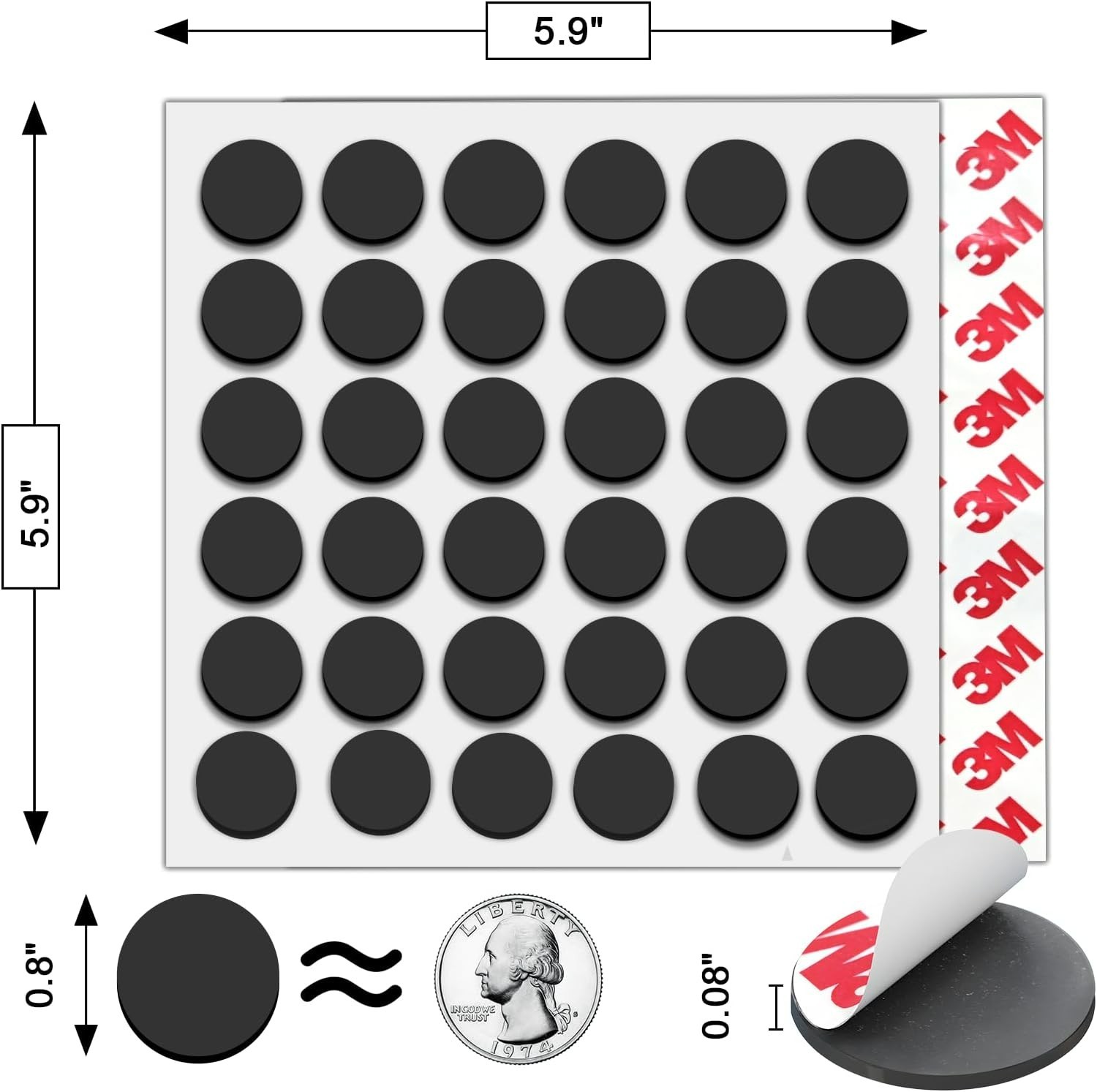 36Pack, Round Magnets Dots Peel and Stick, Diameter 0.8" x 0.08" Thick Precut...