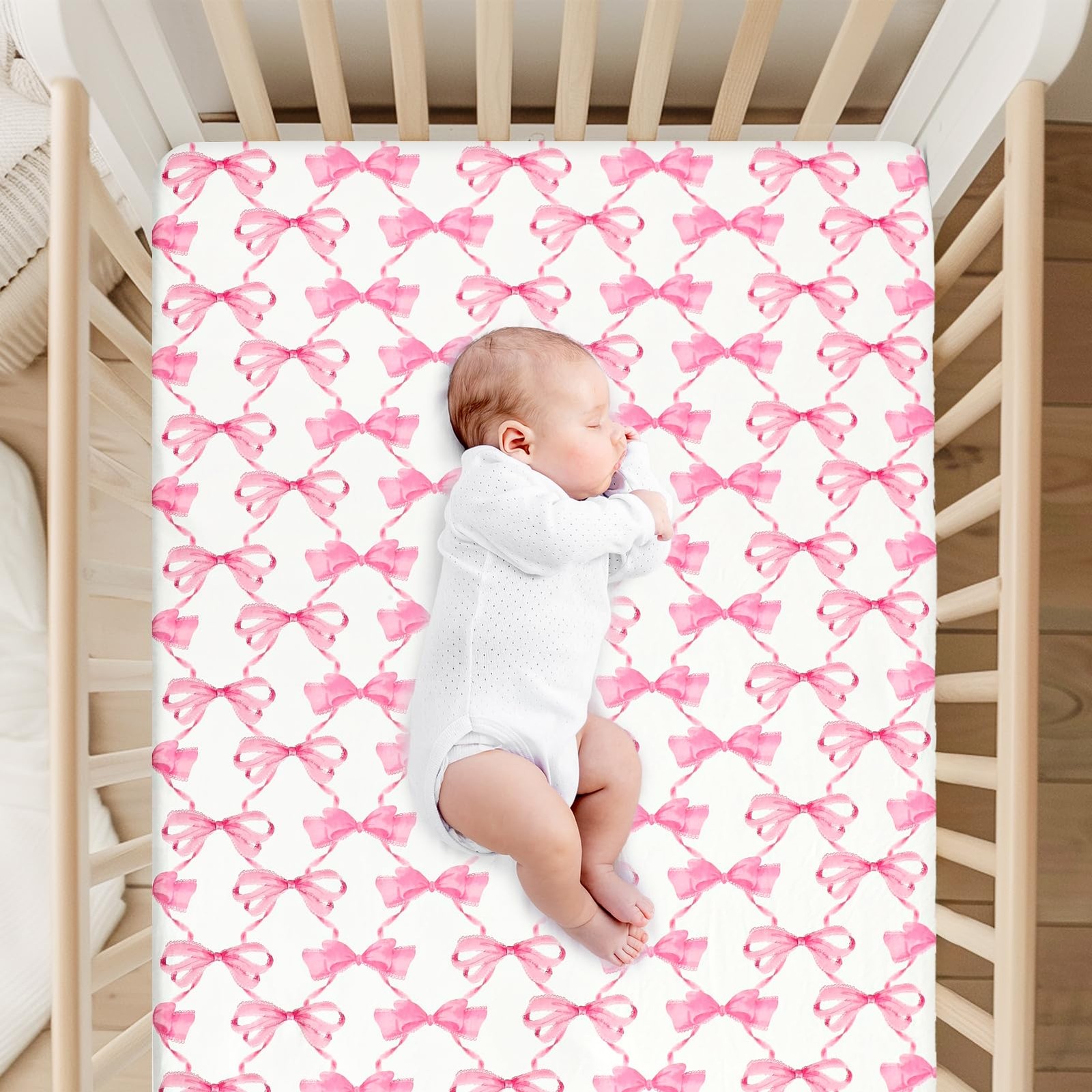 как выглядит Crib Sheets Fitted Standard Toddler Mattress Ultra Soft Pink Bow фото