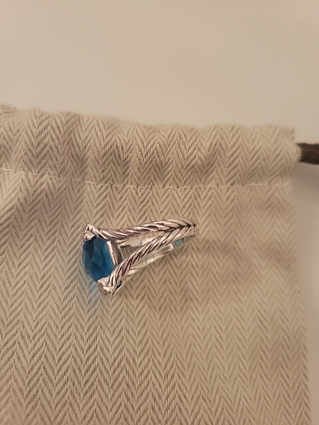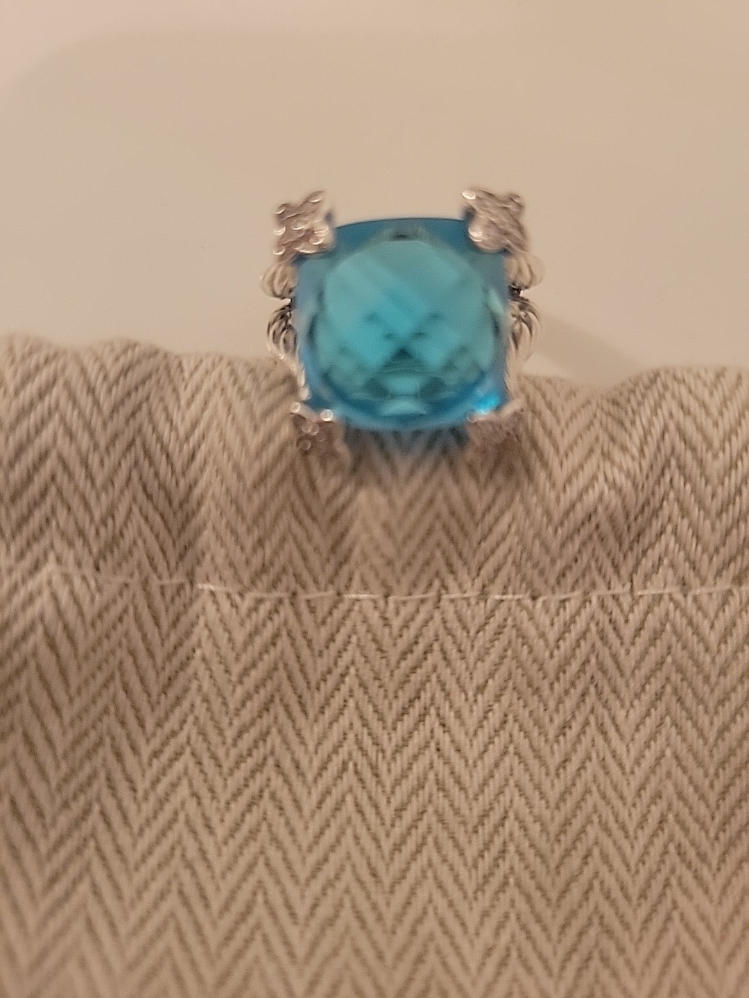 David/Yurman 14x14mm Cushion on Point Ring with Blue Topaz Ring size 7