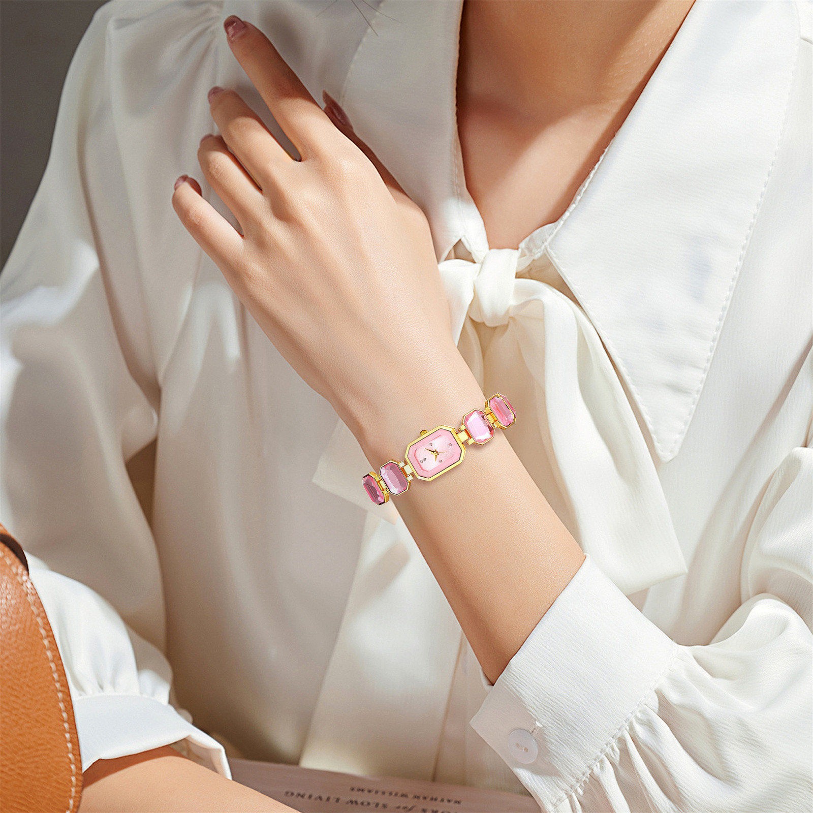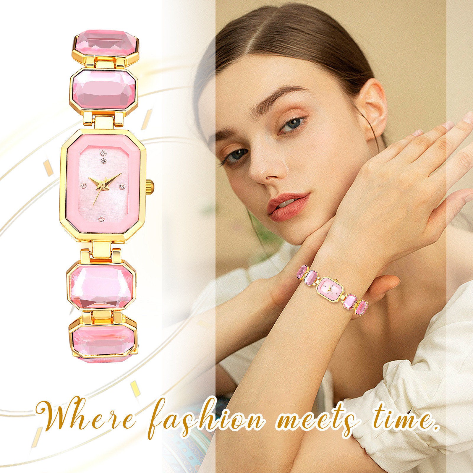 как выглядит Square Case Quartz Wrist Watches for Women Faux Gem Strap Bracelet Banquet Watch фото