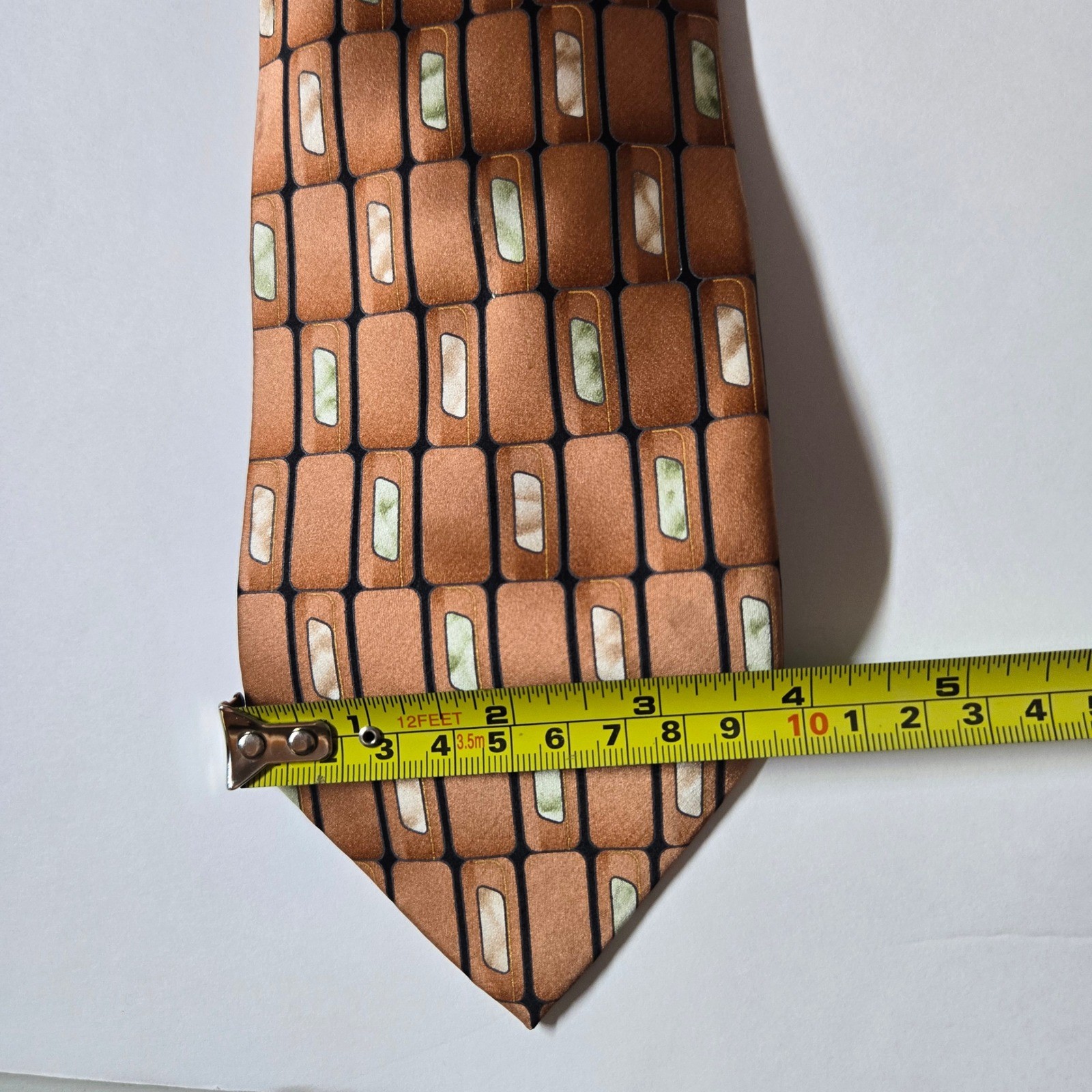 как выглядит Stafford Silk Blend Necktie Mens Brown Geometric Block Pattern фото