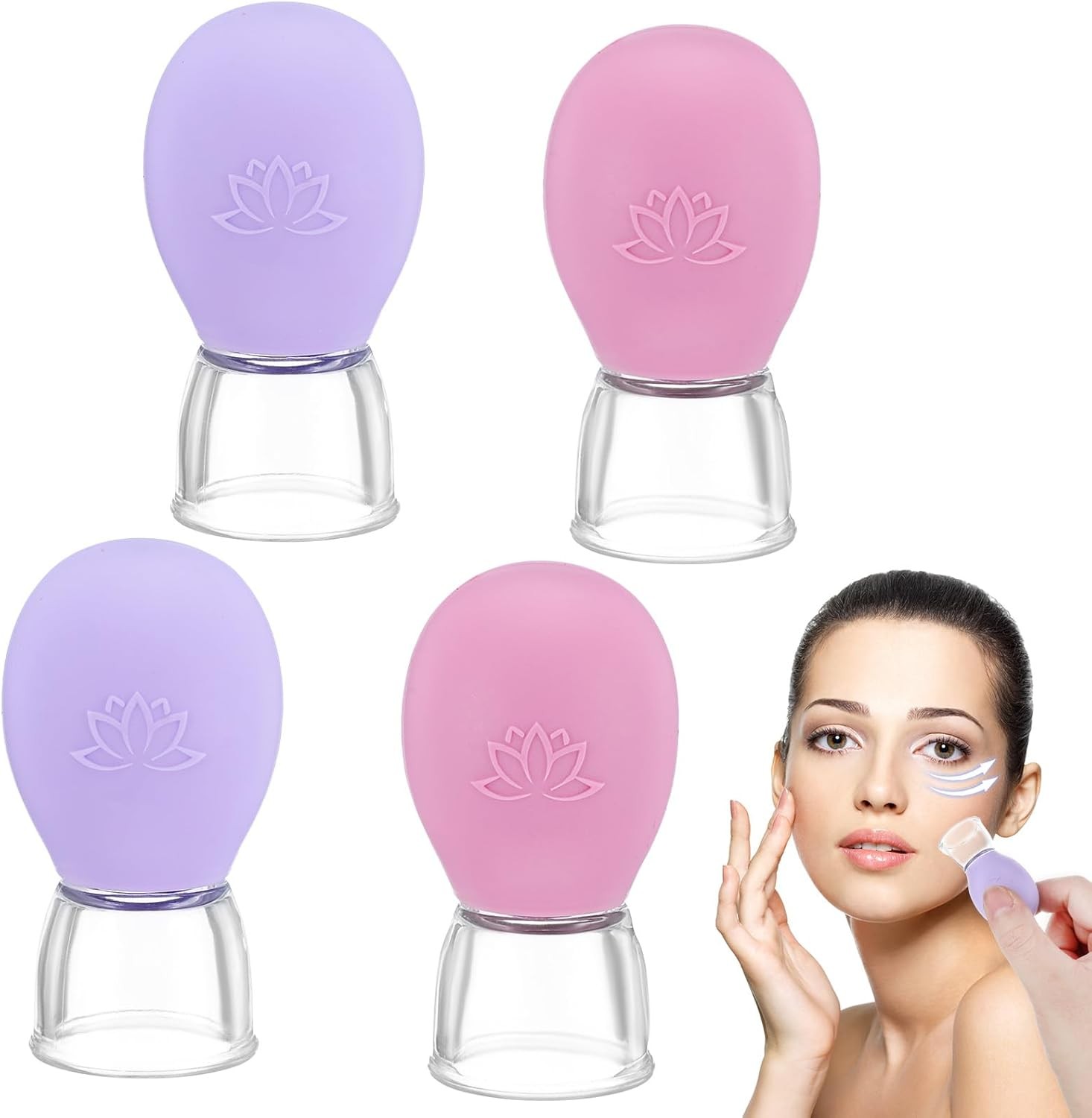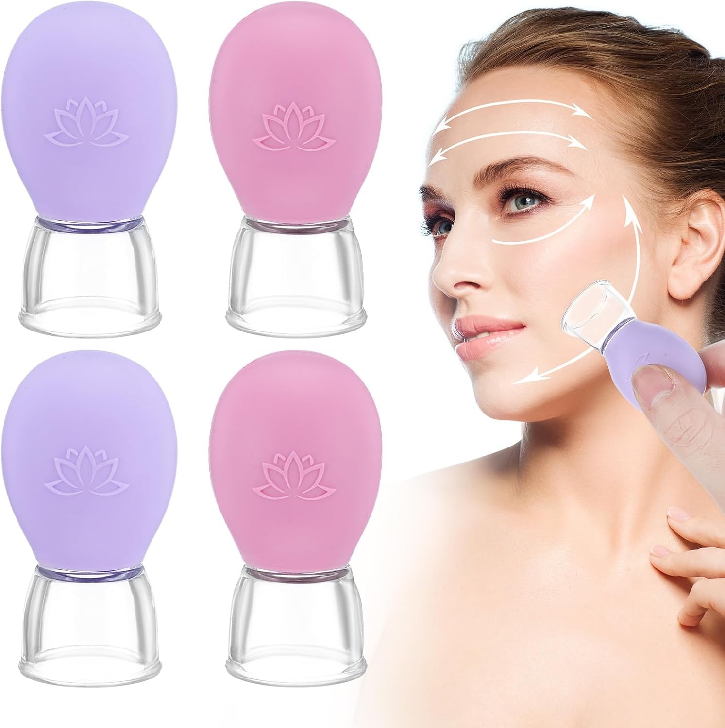 4Pcs Facial Cupping Therapy Set, Silicone Face Cupping Kit for Massage, Anti Cel