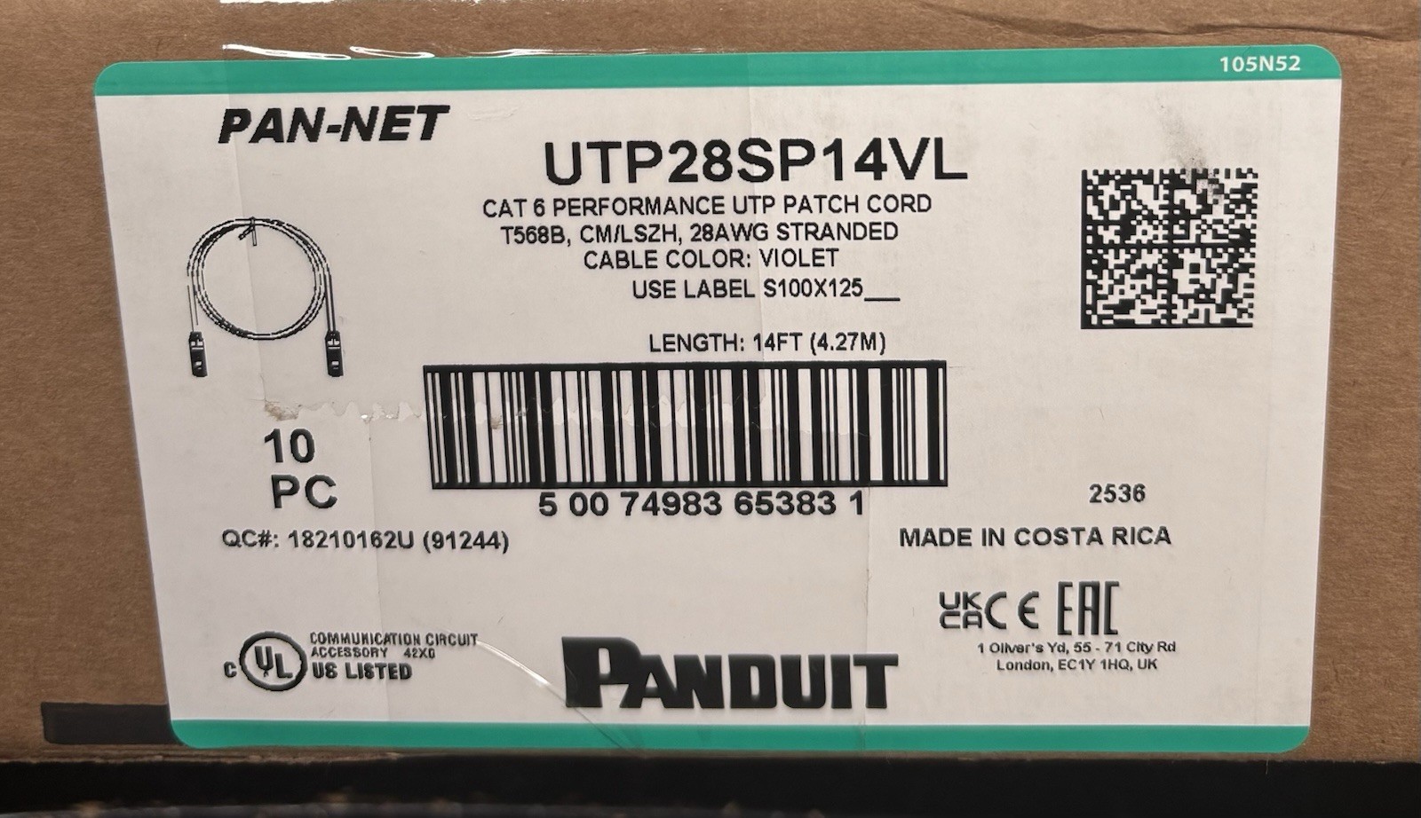 PANDUIT UTP28SP14VL 14' Violet PAN-NET CAT 6 Ethernet UTP PATCH CORD 4.27m