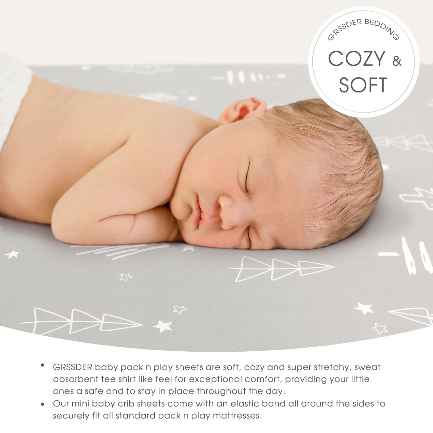 Stretchy Ultra Soft Jersey Knit Fitted Pack n Play Sheets Set 2 Pack, Portabl...