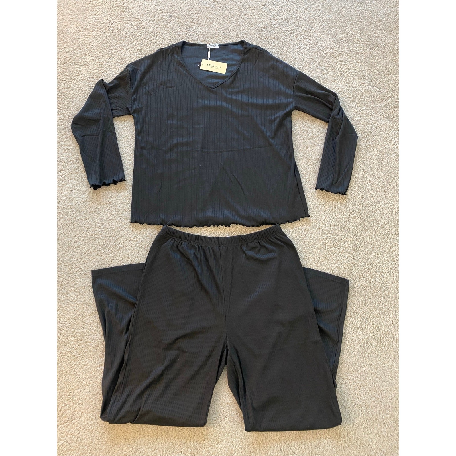 как выглядит New Ekouaer Ribbed Knit PJs/Lounge Set Long Sleeve Top Pants w/ Pockets фото