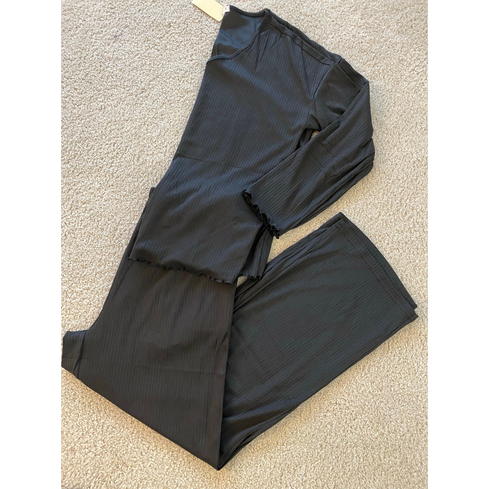 New Ekouaer Ribbed Knit PJs/Lounge Set Long Sleeve Top Pants w/ Pockets