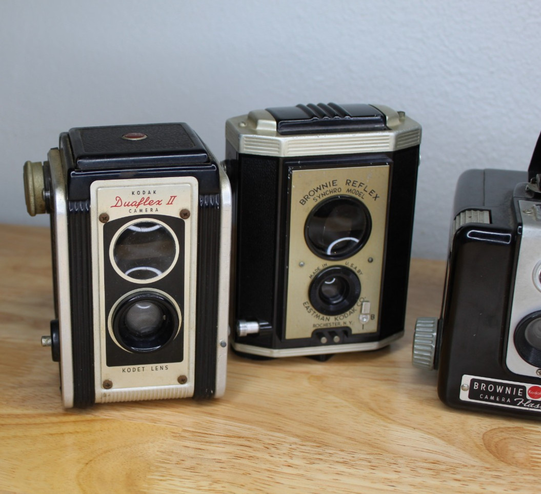 Kodak Brownie Reflex Duraflex II Hawkeye w Kodalite Flash Vintage Camera Lot
