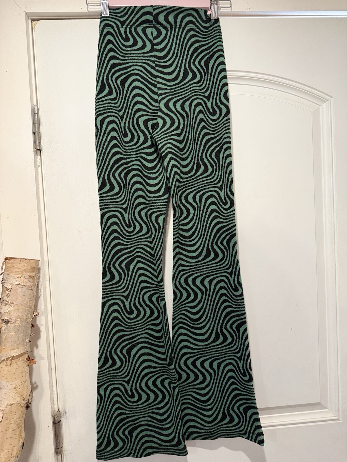 как выглядит Urban Outfitters Flare Pants /Black Green Wavy Pattern Sz Small Groovy фото