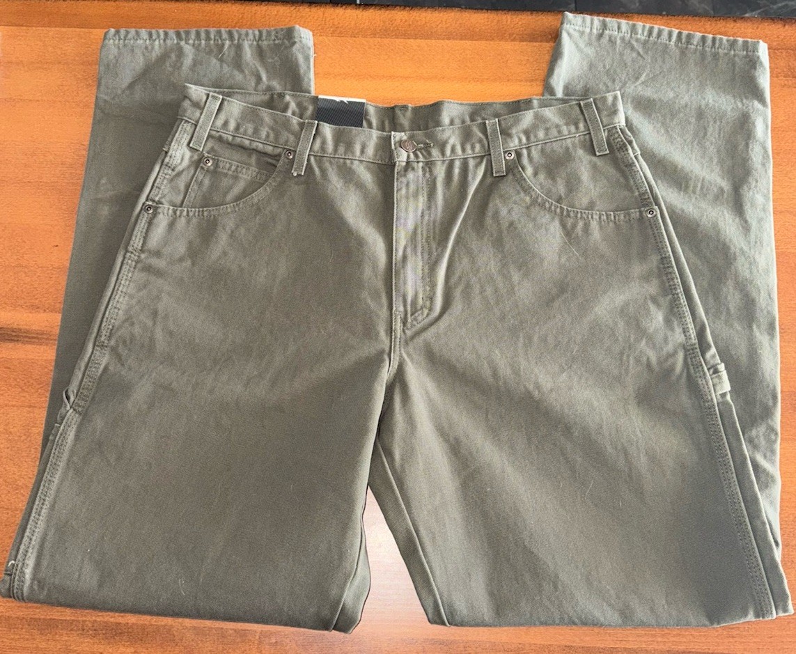 Dickies Carpenter Pants Jean Relaxed Fit Denim Canvas Straight Leg Green 36x34