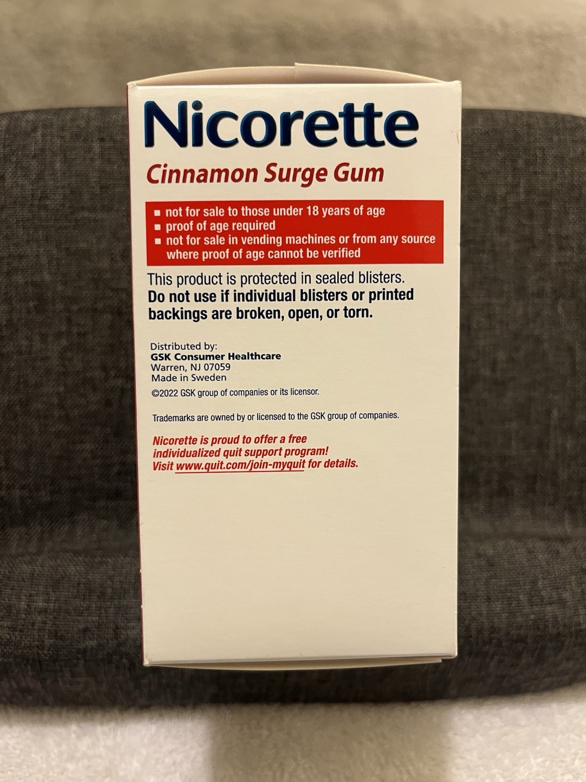 Nicorette Nicotine Gum Cinnamon Surge 2mg 100 Pieces NIB Exp 02/2027
