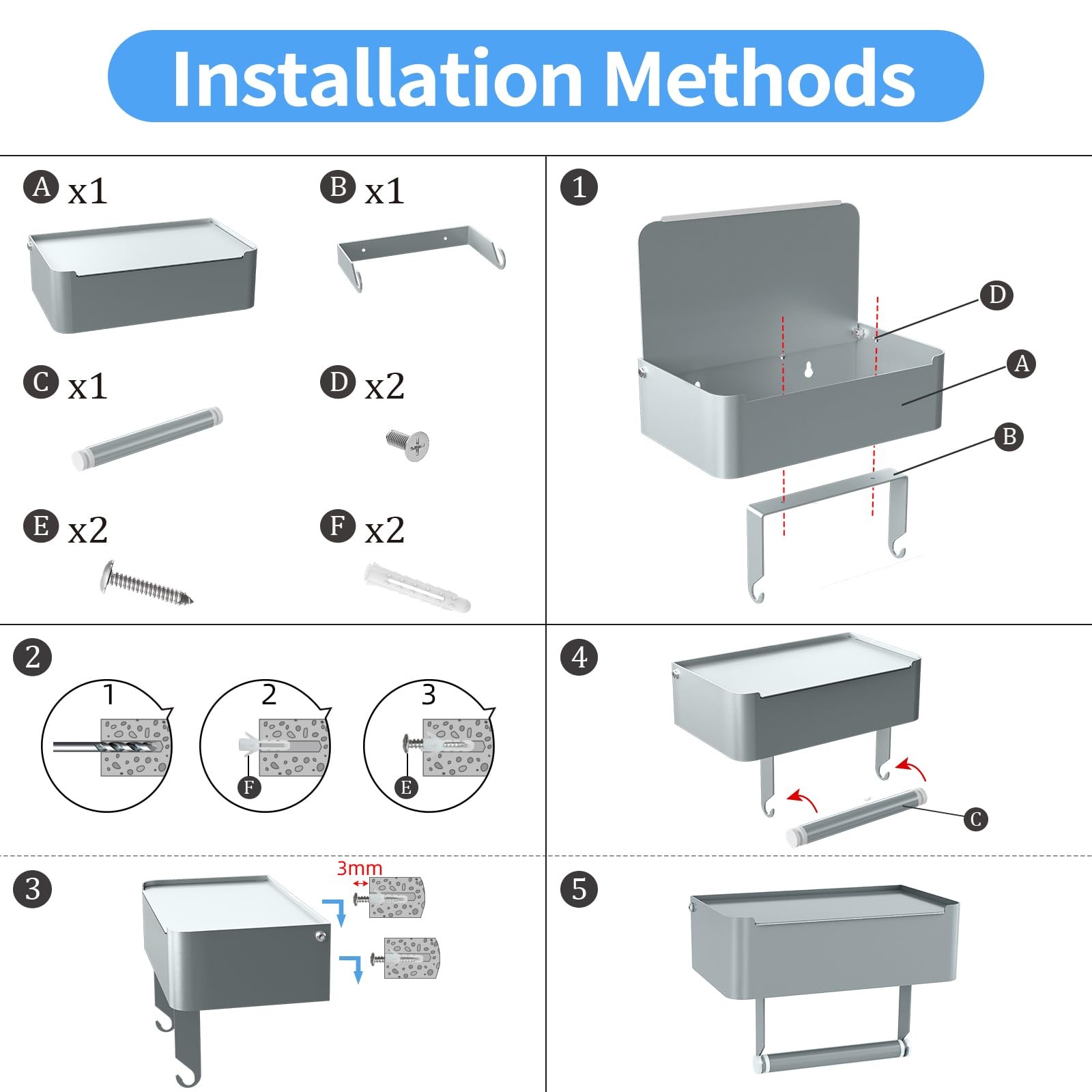 Holder with Shelf, Flushable Dispenser Fits for Bathroom Wipe Storage, Keep Y...